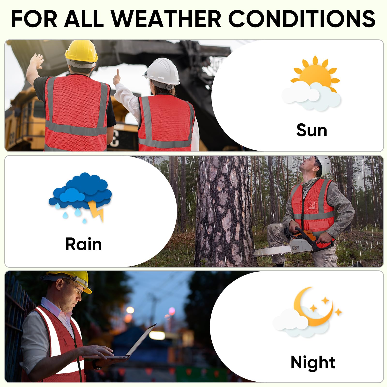 [ALL WEATHER CONDITIONS] Safety is our #1 priority. We want you to be seen in all weather conditions. 2 inches wide hi-vis reflective strips are wrapped 360° so you can be seen in all directions.
