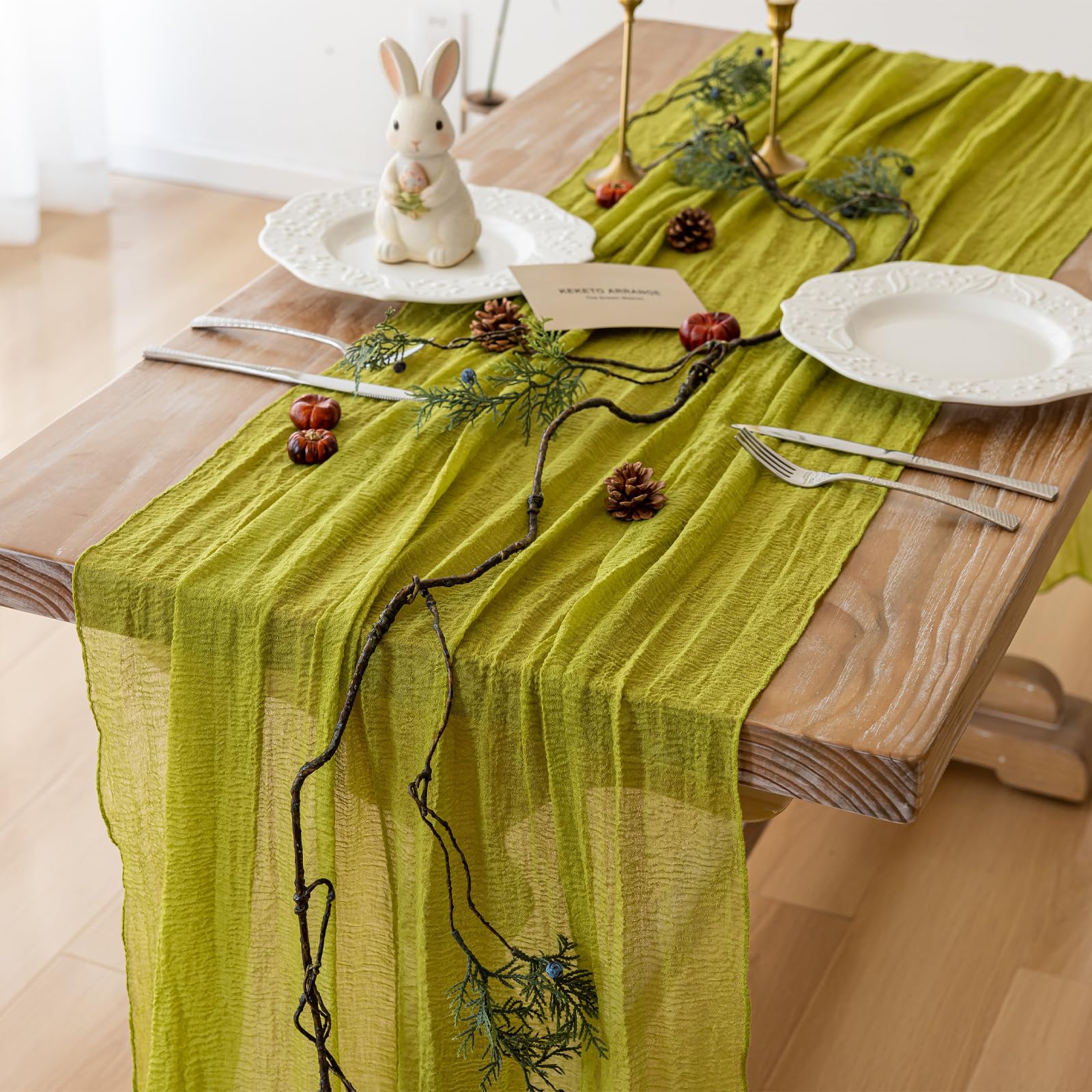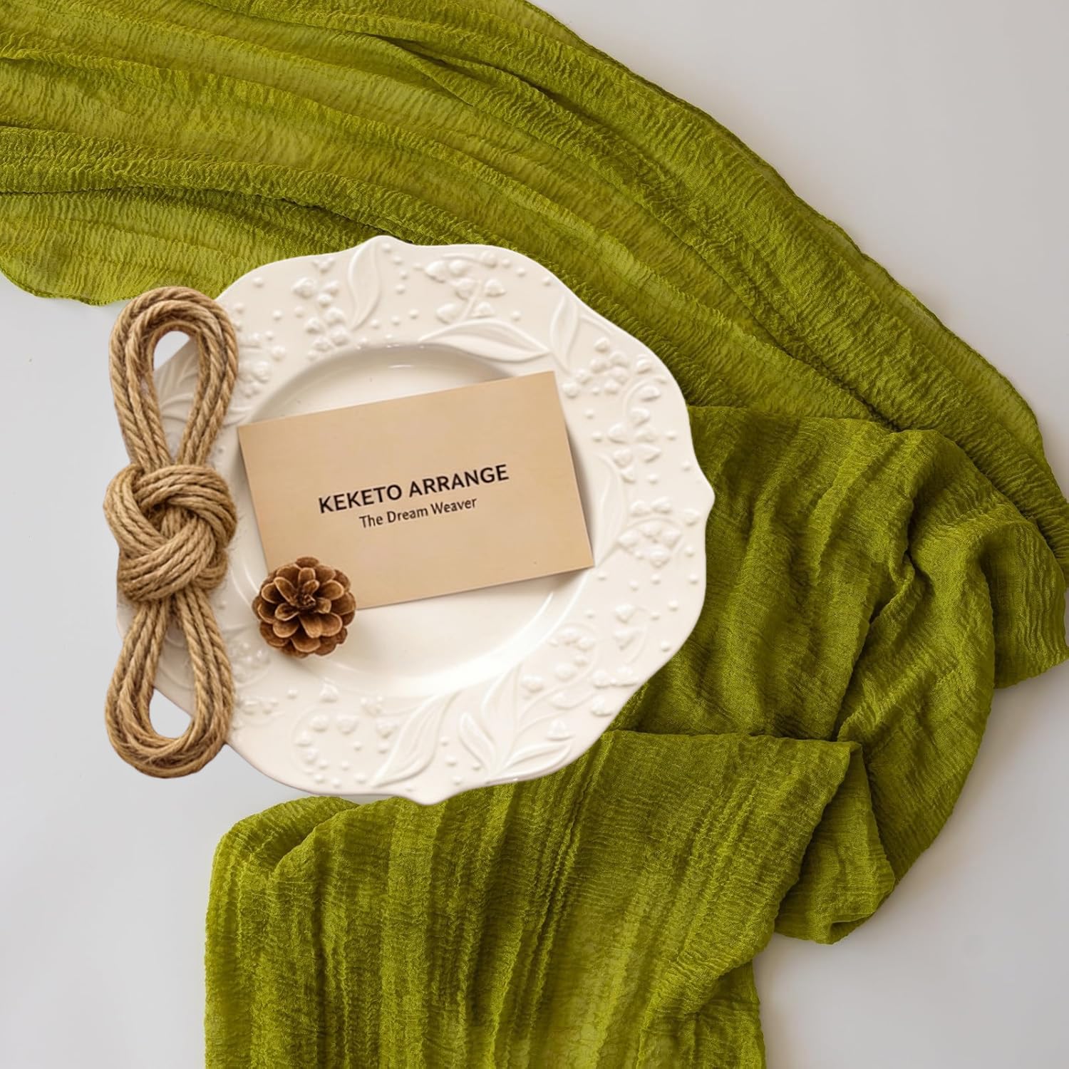 【Package Includes】1 Table runner (35 x 120 inches) and 1 natural jute rope(40 Inch), all neatly packed in a transparent plastic bag. This versatile runner is designed to fit most table types.