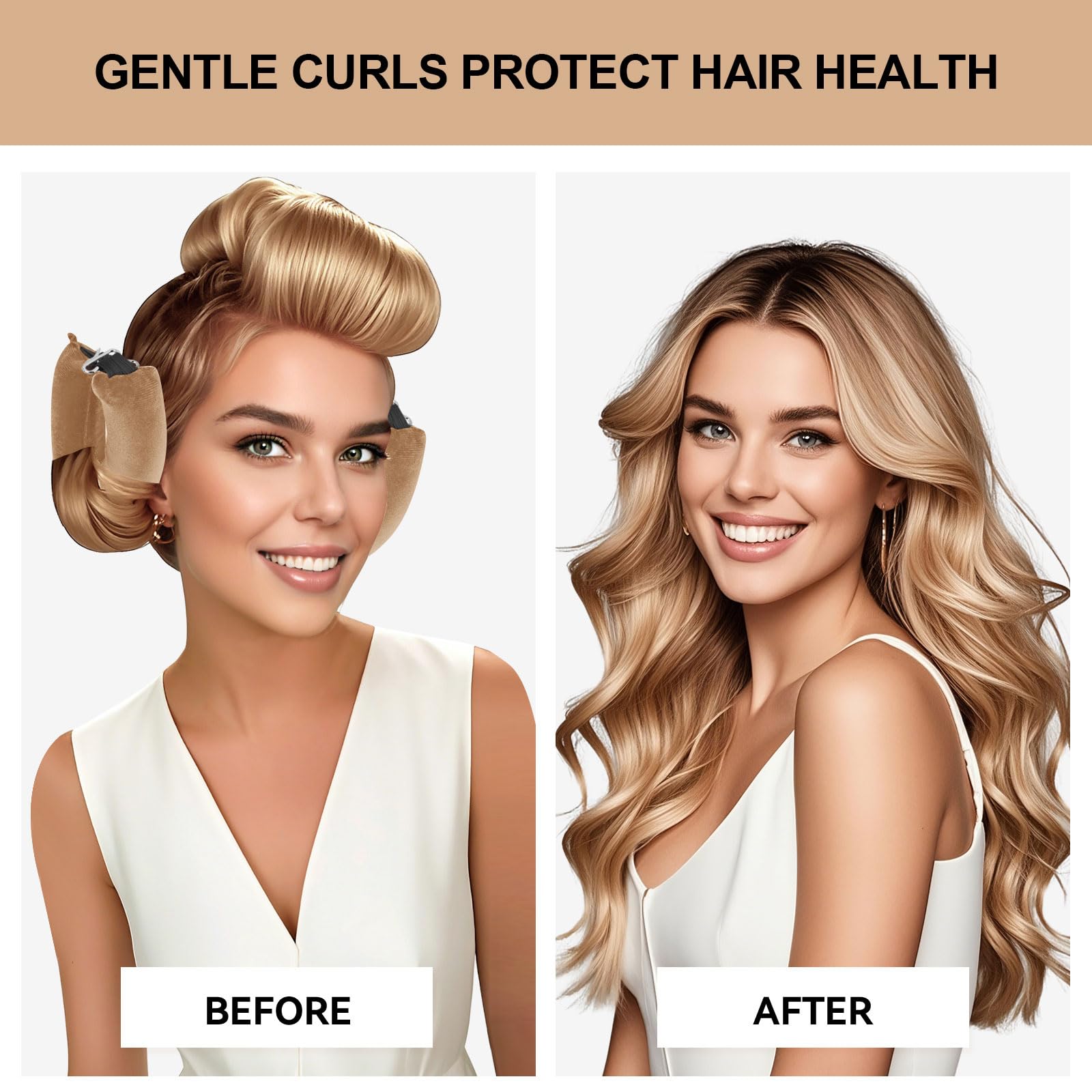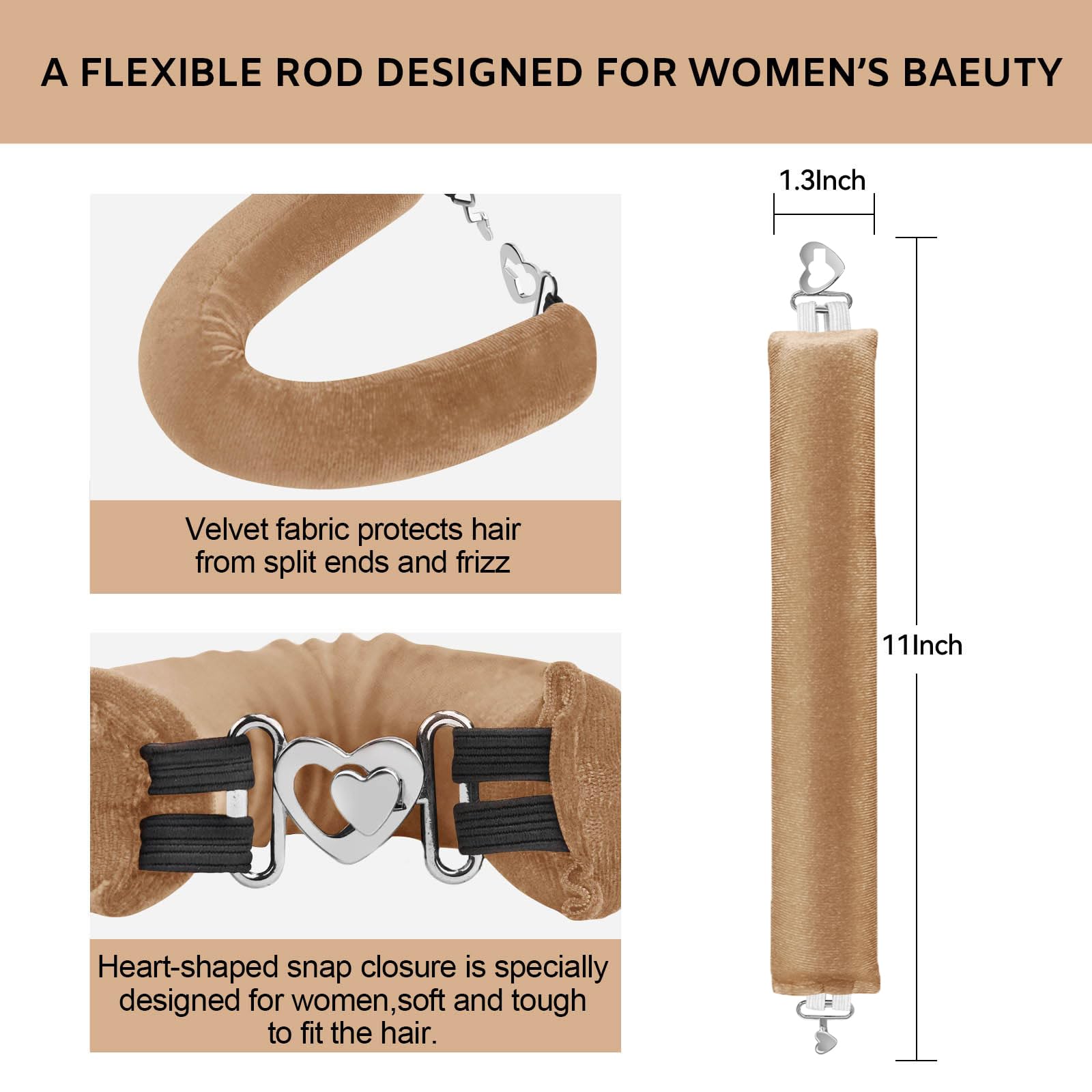 Sleep Friendly Curling Rod: These heart-shaped curlers feature upgraded hook-and-lock technology, ensures stay firmly in place while you sleep. The pillowy velvet surface prevents hair from snagging and provides maximum comfort for side/back sleepers