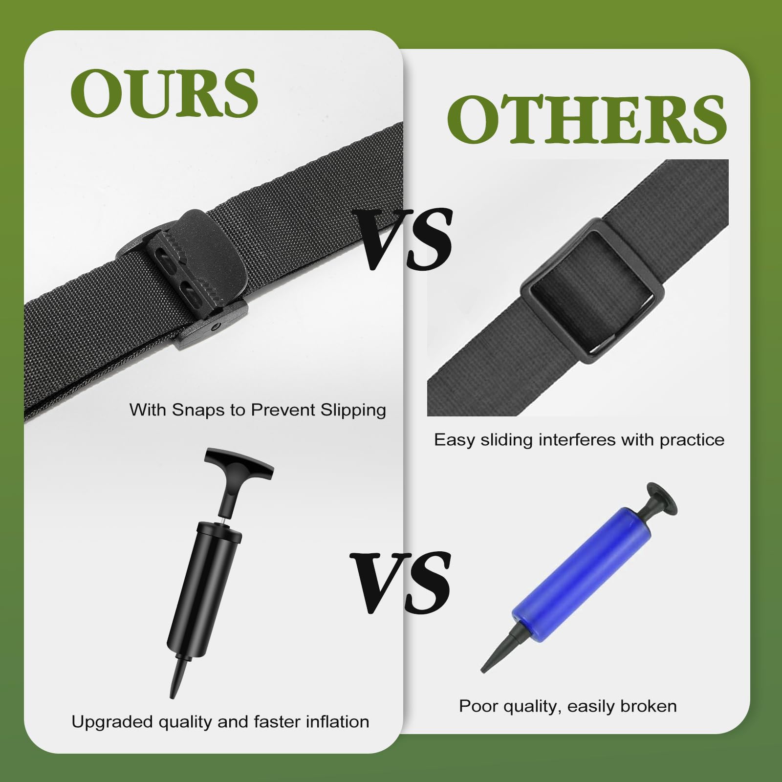 【Easy to Use】: The golf training aid ball comes with a small air pump, just pull and push the lever back and forth to inflate the ball, remember to cover the air pump port. Remember to cover the air pump port. When you don't need to use it, you can pinch the air pump port and press the ball to release the air for easy storage.