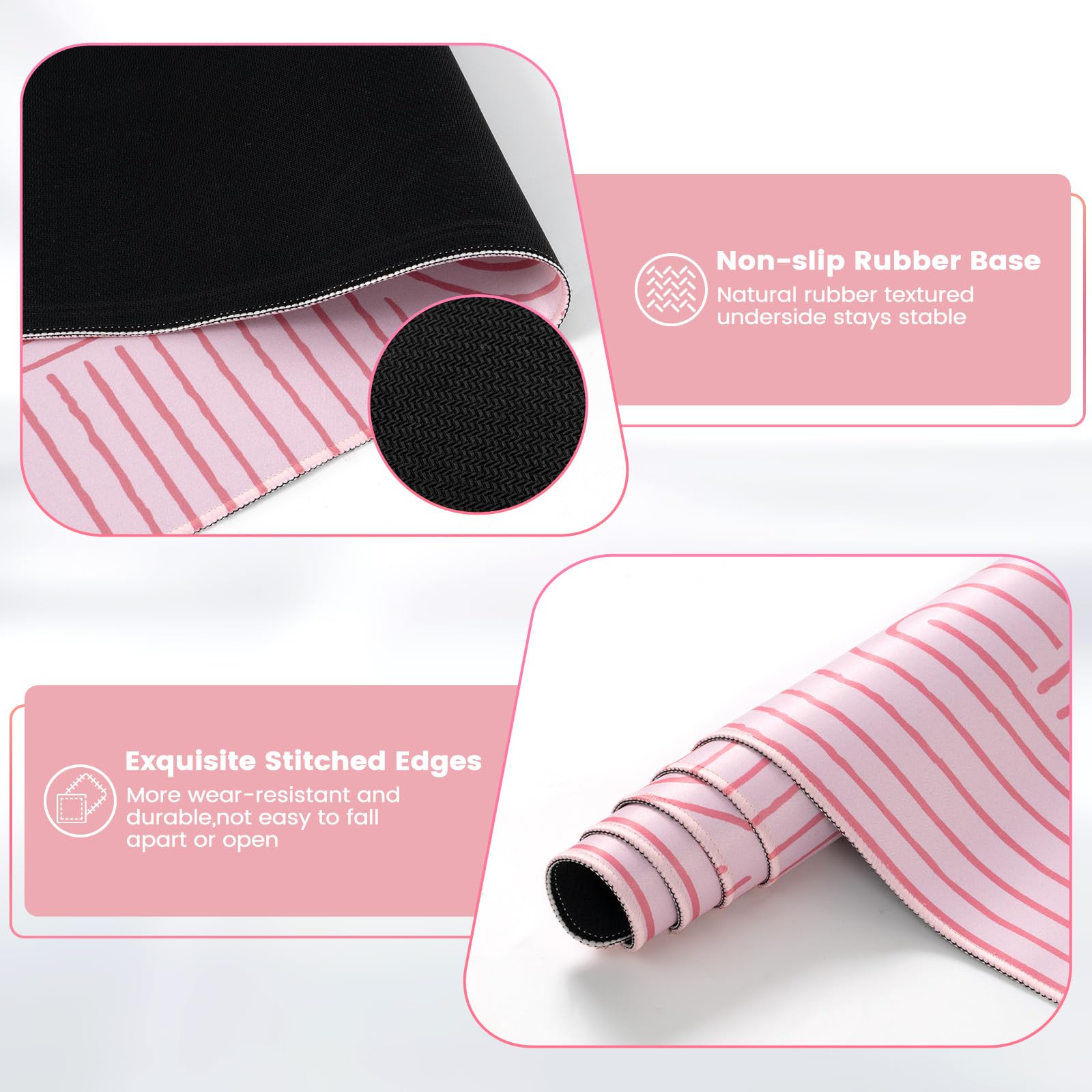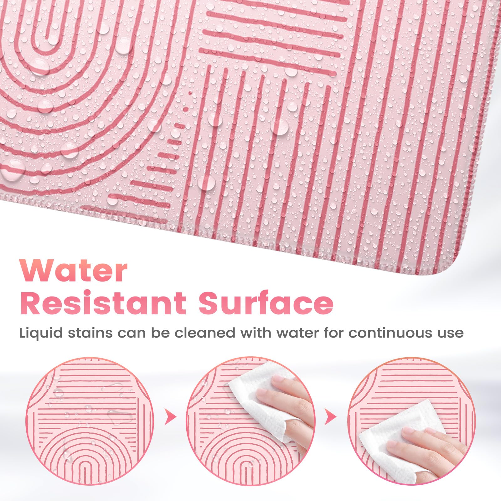 Water-resistant Surface: Long mouse pads for desk with a spill-proof coating makes liquids slide right off the surface. Effectively prevent damage from spilled drinks or other accidents. You can easily clean any dirt with a damp cloth