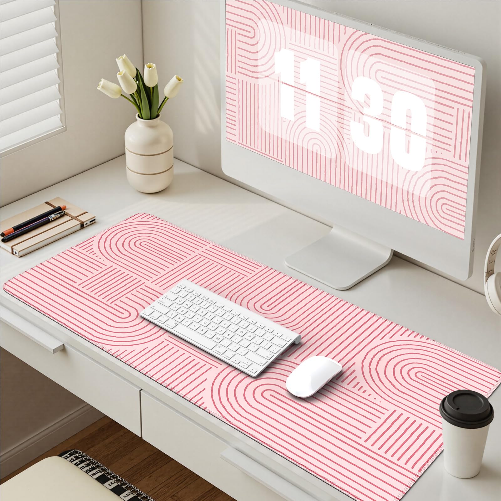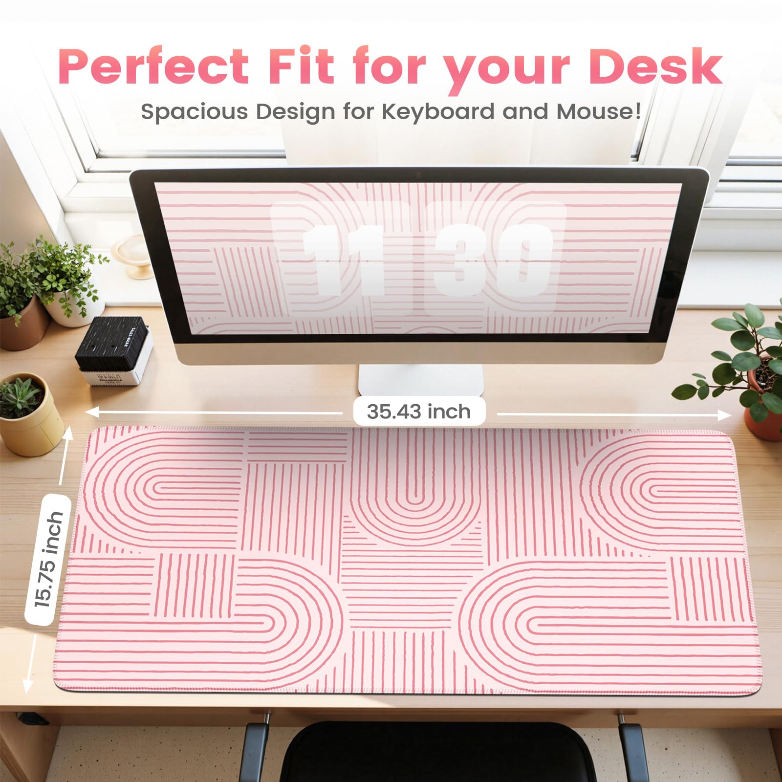 Extended Large Mouse Pad Size: Large desk pad mat's measure: 35.4 x 15.7 inches. The keyboard and mouse pad is large enough to have a mouse, gaming keyboard, and other desk items Just immerse into your work or games