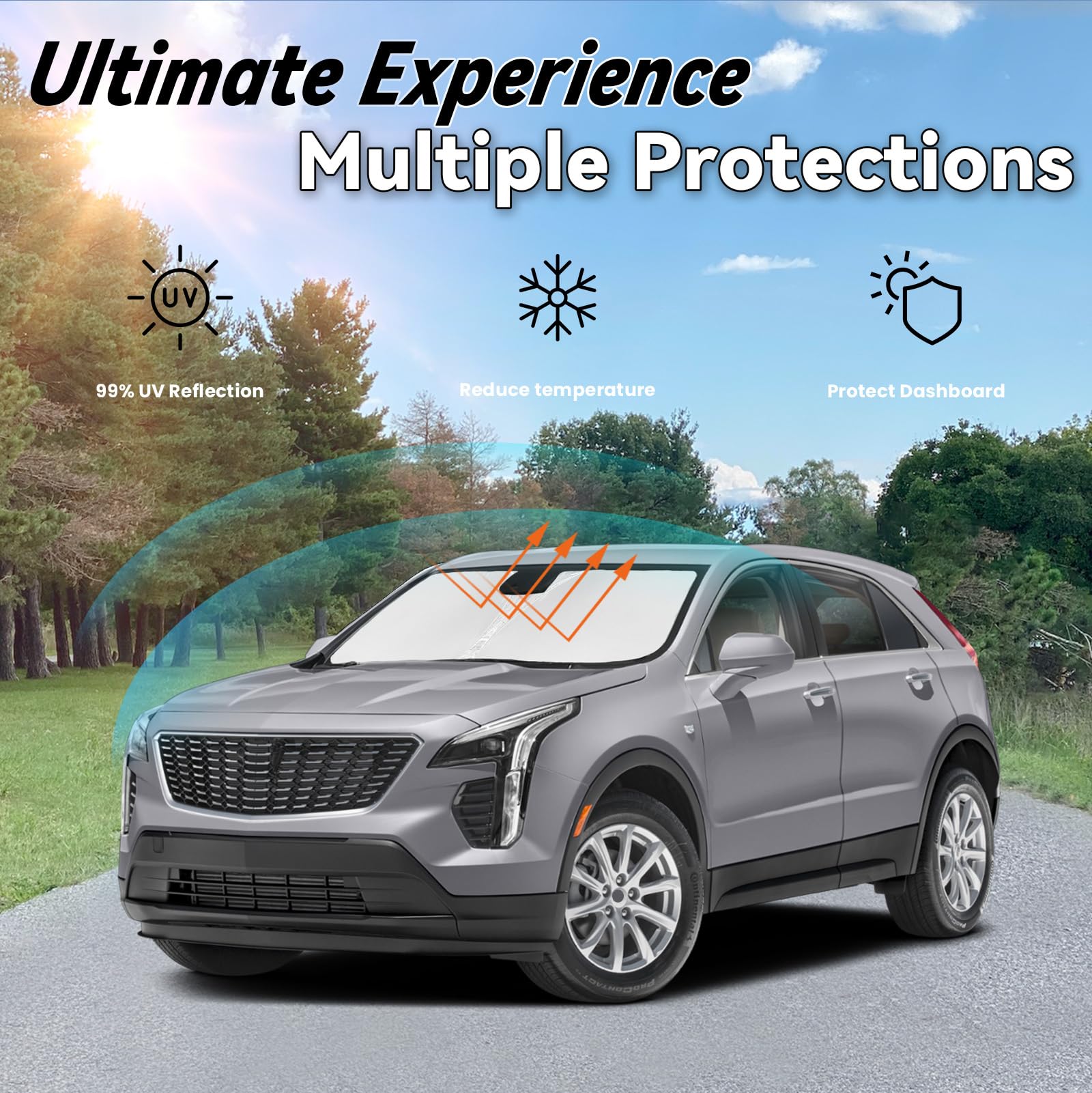【XT4 Sunshade】: Car sun shade for Cadillac XT4 2019-2025 is custom-fit for a precise installation; It fits perfectly to your window without the need for suction cups; It won't sag or collapse, making it ideal for outdoor camping adventures