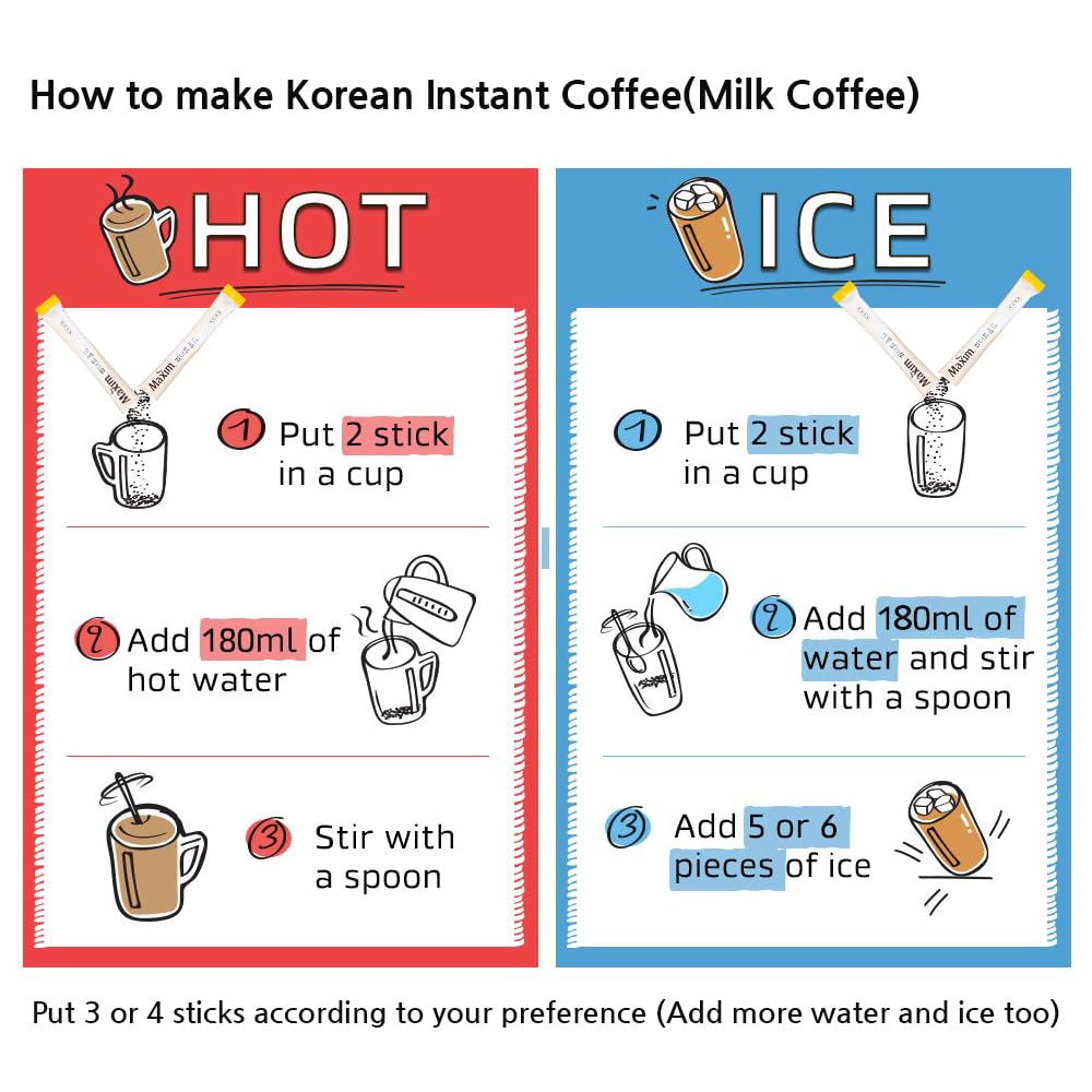 π A Must-have Item on every trips : Famous Korean Instant coffee mix that offers deep aroma and flavor; Prepared portions of coffee, sugar and creamer mix packed in one convenient stick; Don't bother with sugar or creamer - enjoy the perfect blend by pouring one stick into a mug and adding hot water