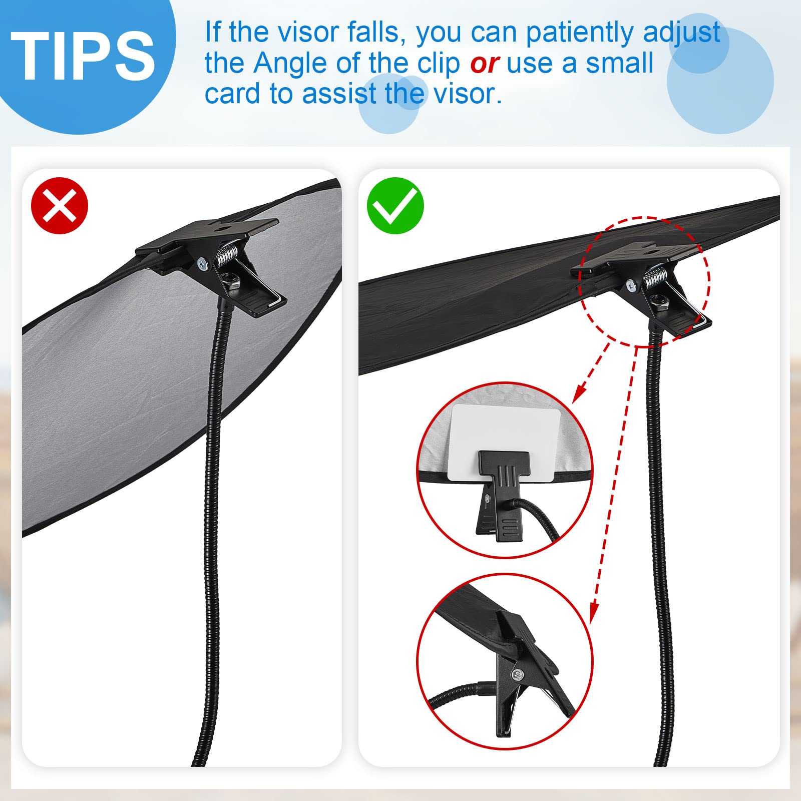 Warm Tips: the clamps of the phone sun shade are easy to adjust, if the board is prone to crooked, please be patient to adjust the angle of the clip