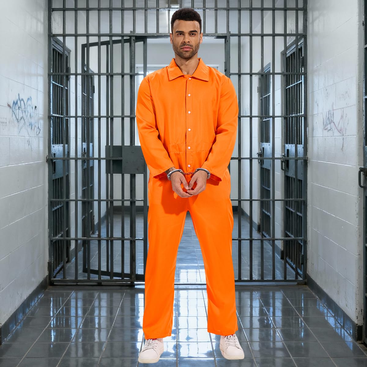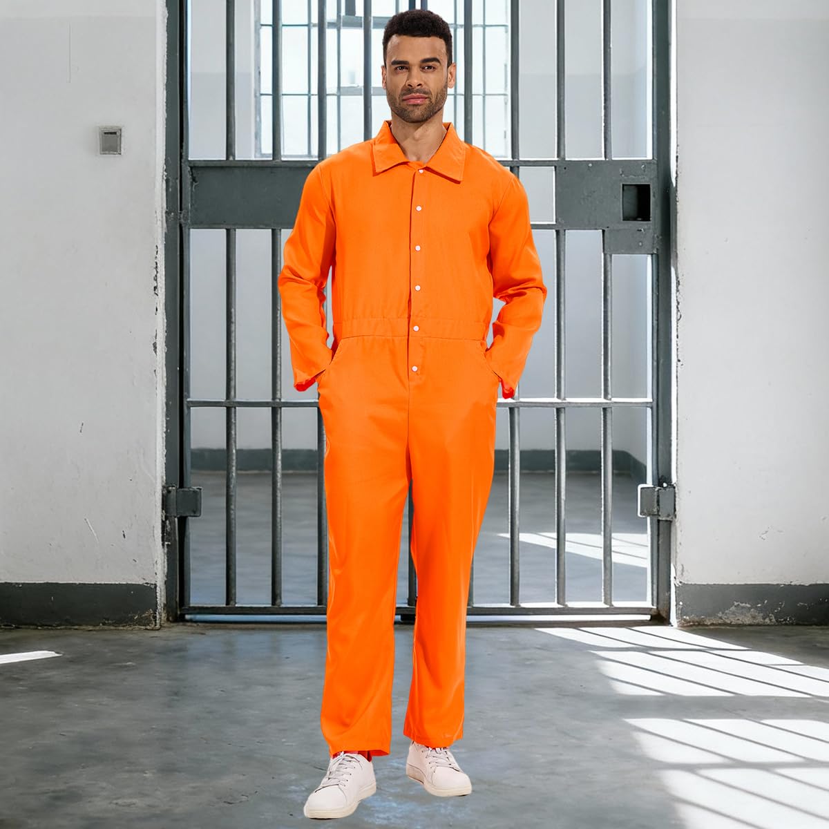 Adult Jumpsuit Size: this orange prisoner jumpsuit is standard adult mens size, we offer S/M/L/XL/XXL/3XL sizes for you, please make sure your right size before order it. Please choose the smaller size according to our size chart if you are female