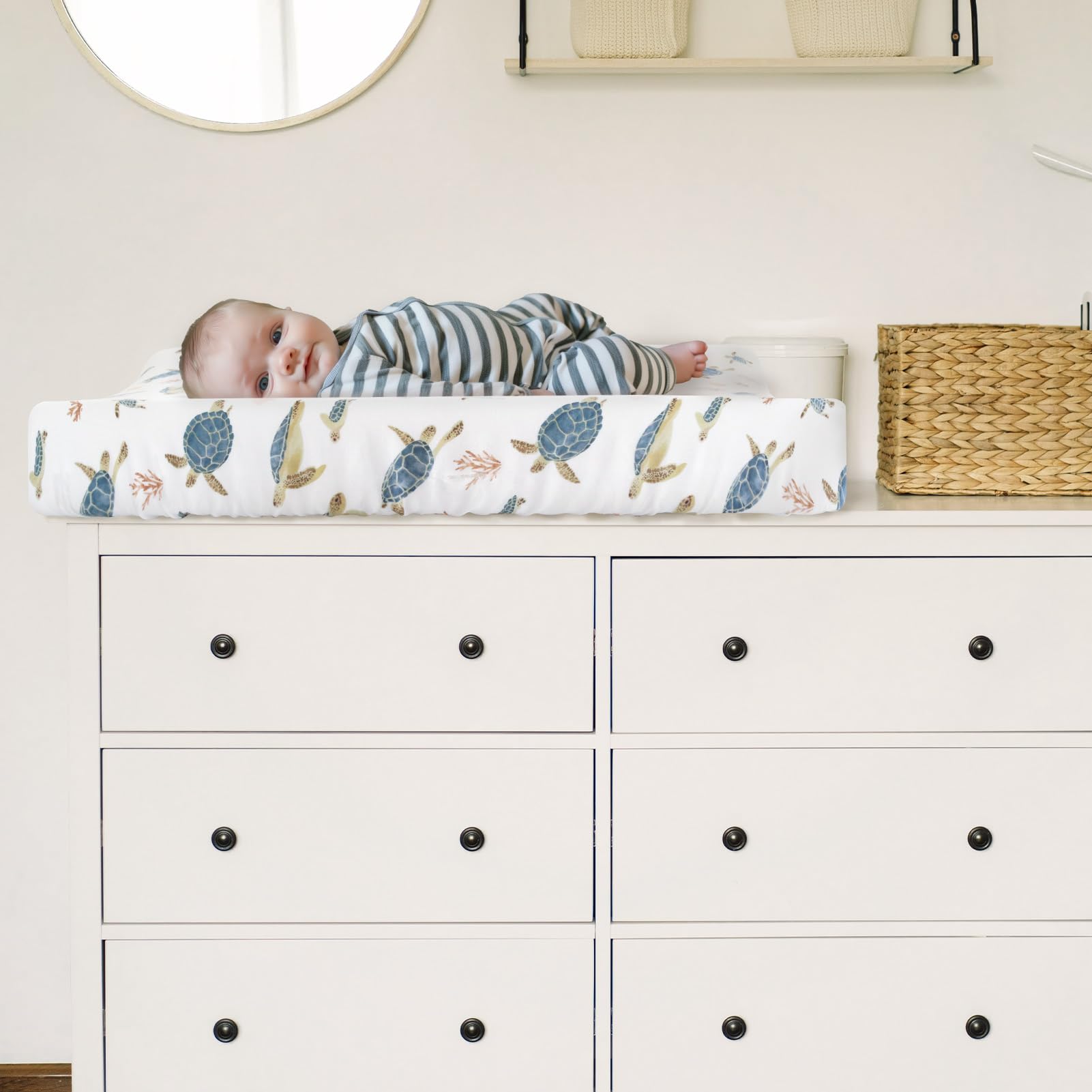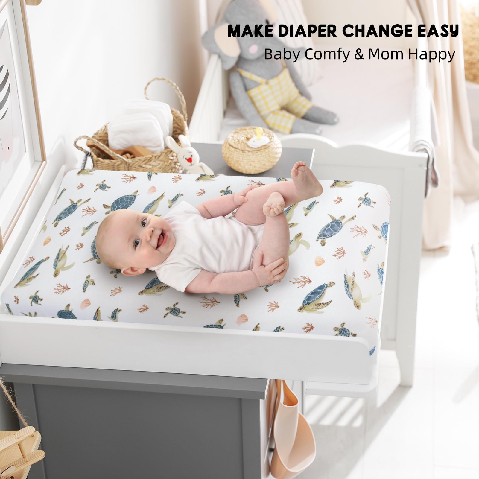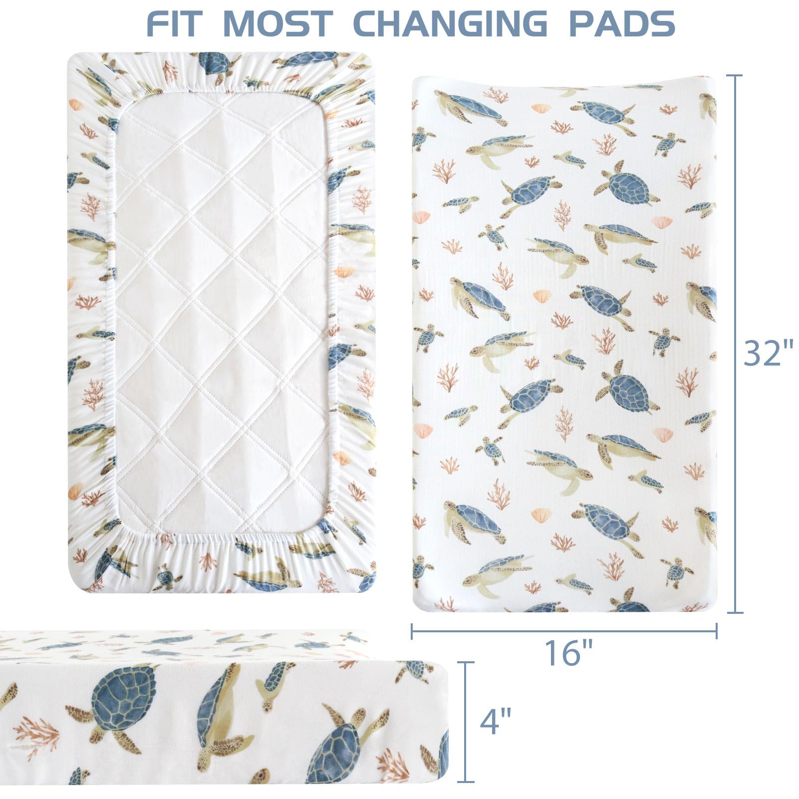 Comfortable and Security - Our changing table covers come with an elastic band all around the sides, which fits snugly around your changing table pad and makes the changing cover safer for babies.