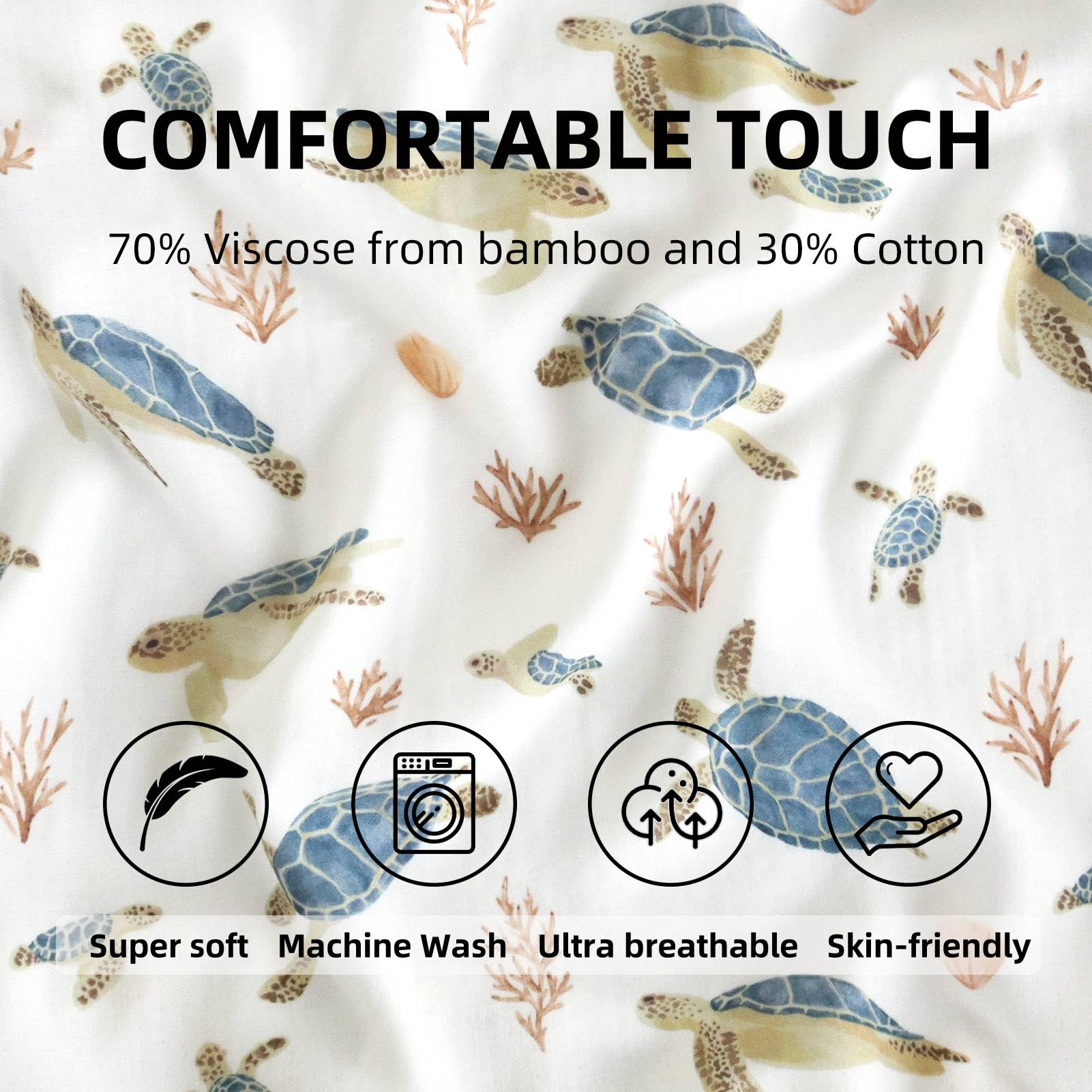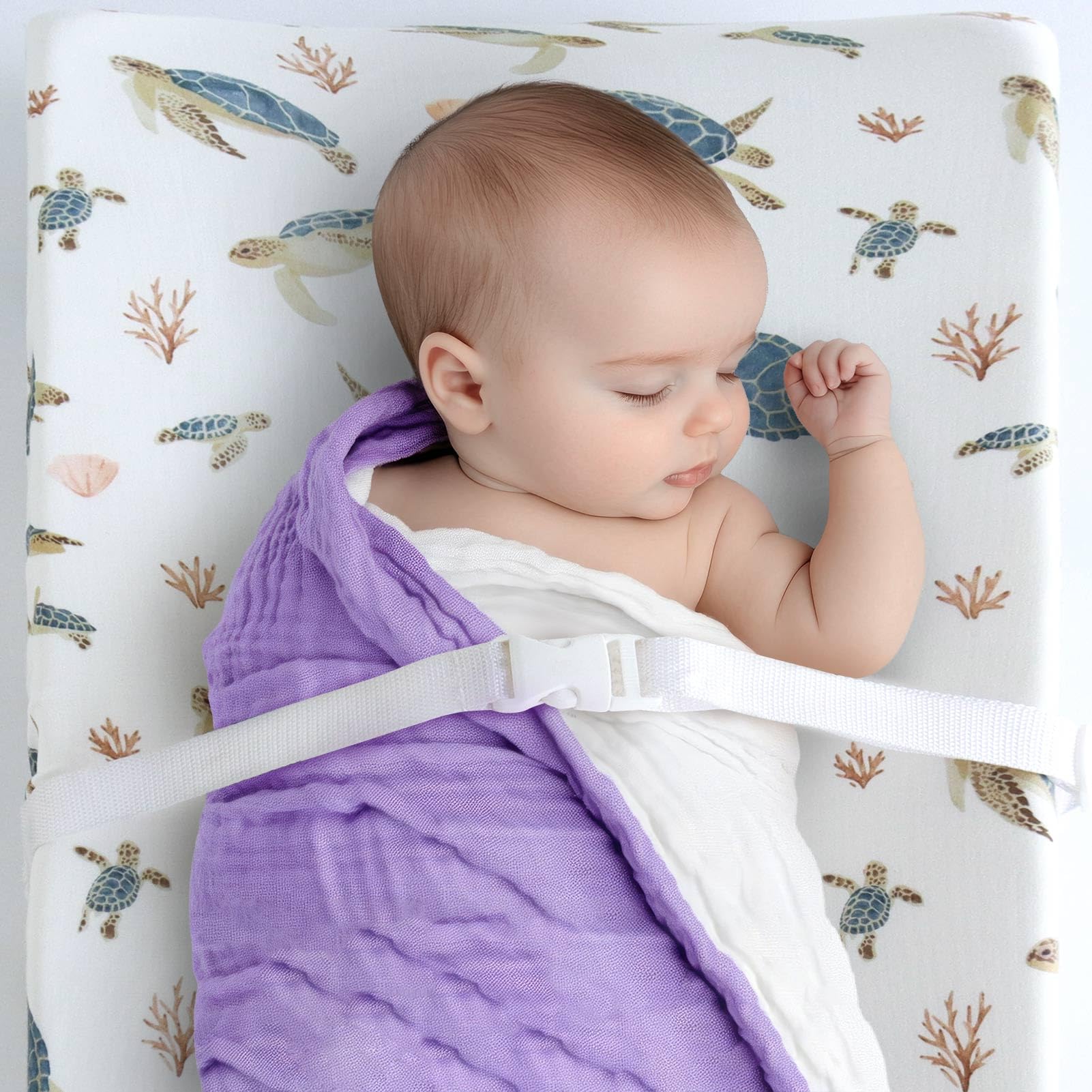 Soft & Breathable - LifeTree changing pad covers are made of 70% Viscose from bamboo + 30% cotton blend muslin fabric, designed to be soft on even the most sensitive skin. These muslin changing covers will keep your baby cool on hot summer days and great for use all year around. Wash alone or with similar texture/ color items in cold on gentle cycle, tumble dry low.