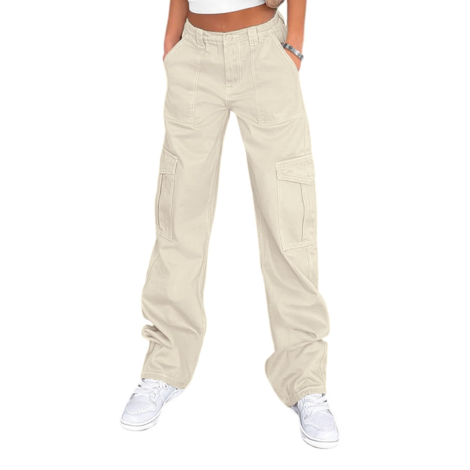 Features: Cargo pants with 6 pockets, stretch elastic high waist, relaxed fit, zipper and button closure, hip hop joggers sweatpants, wide leg cargo pants, Y2K style, hippie outfits, and the loose fit is ideal for casual or sporty.