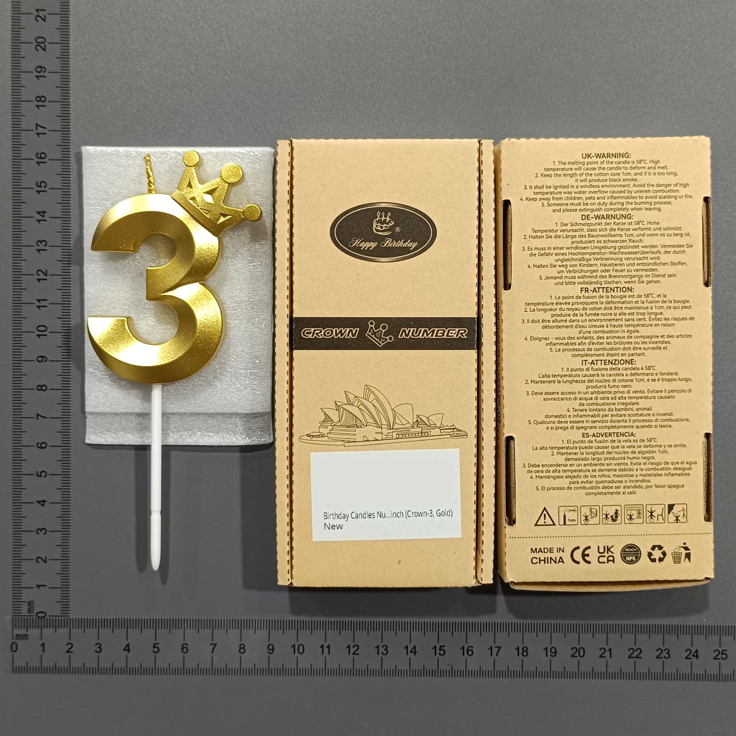 Jumochi 3D Crown Birthday Number Candles You don't need to have great cake decorating skills, you can still make your cake look beautiful with our candles. Pros: The size is suitable for lots of cakes. The bright gold color is beautiful. The little crown is cute. Long plastic stick do not easy to tip over. It is washable and reusable. Burns slowly, you can keep the candle in a memory box after birthday. Good Packaging. Candle came in a sturdy box, placed within a plastic insert that cradled the candle safely. Versatile Number Candles: You can buy birthday candles of all ages, even if you don't want others to know your age, you can choose question mark ? candle. Material: Wax Candle Dimension including stick: 5.7 x 2.25 x 0.4 Inches Weight: 0.1 lbs What’s in the package: 1 Numeral Candle Be careful - Numeral candles are flammable. Keep away from fire when candles are not in use. Keep away from children when candles are burning.