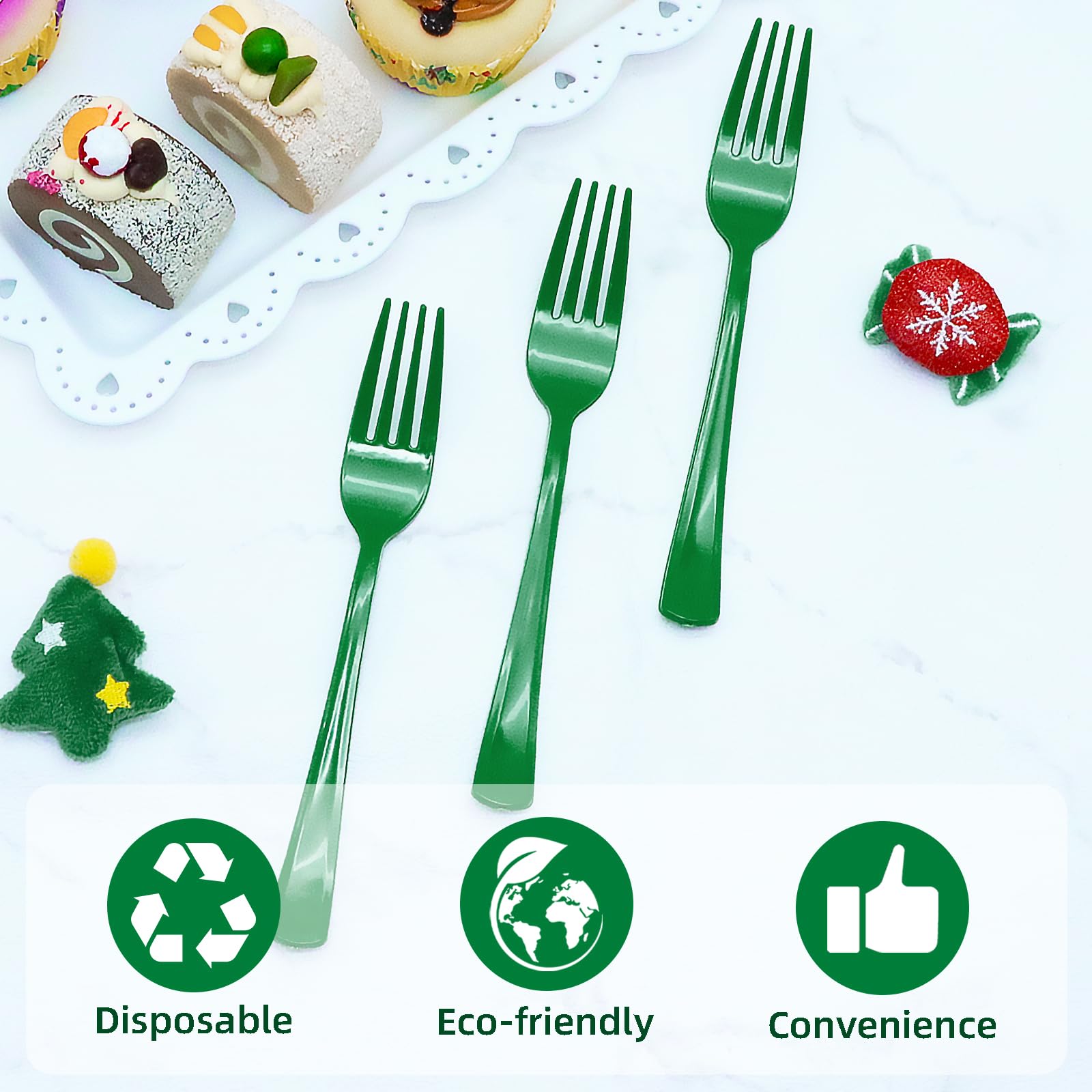 【Convenient】The green plastic forks are disposable and can easily be thrown away after the party, eliminating the hassle of a long wash and clean-up so you can focus on having a great time with friends and family. Of course, if you want to continue using the green plastic forks, simply wash it in soapy water to restore its lustre and get it ready for your next party.