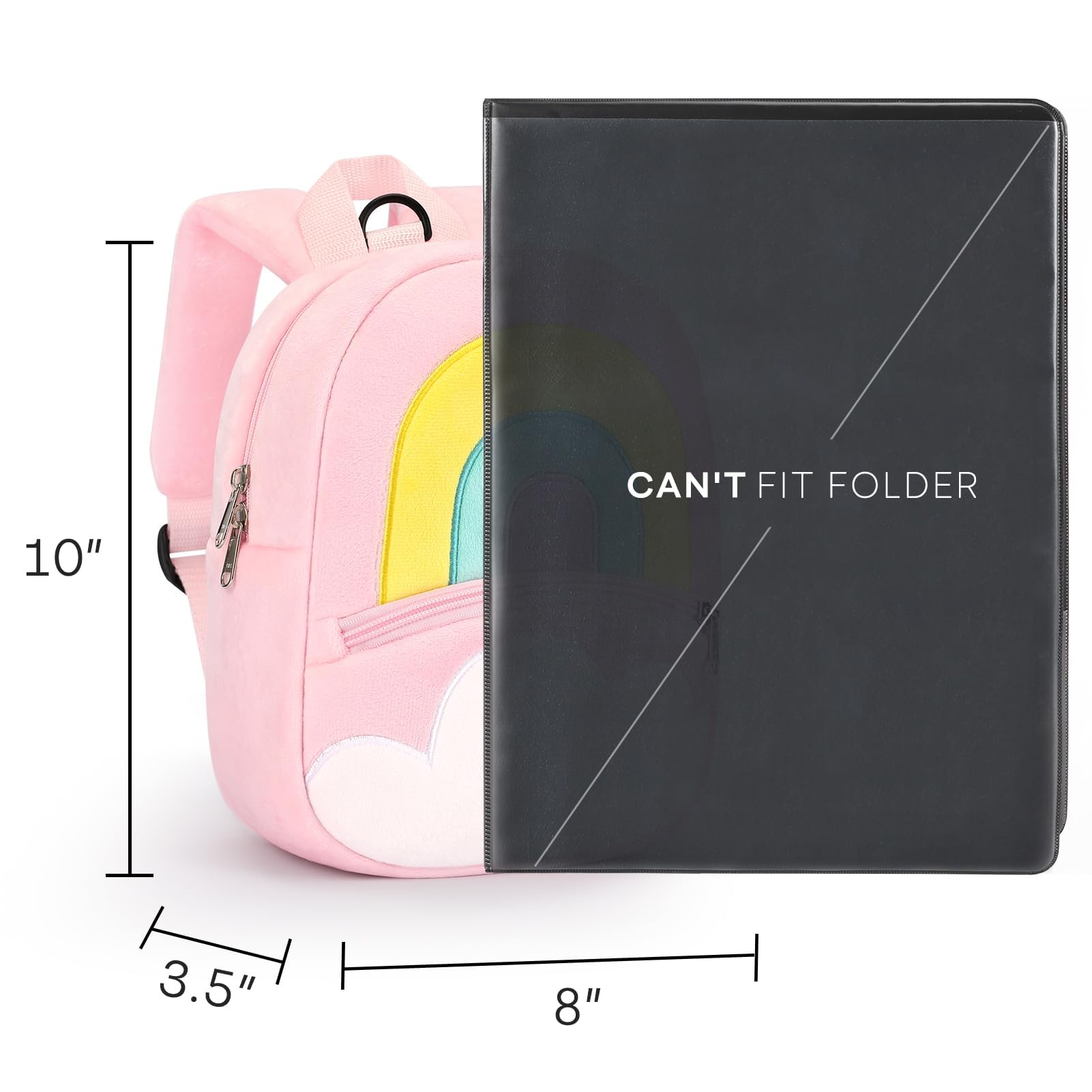 【DIMENSION】 This toddler girl backpack measures 8 x 3.5 x 10 inches. It's the perfect size for kids ages 1~3 years to go to preschool or travel.