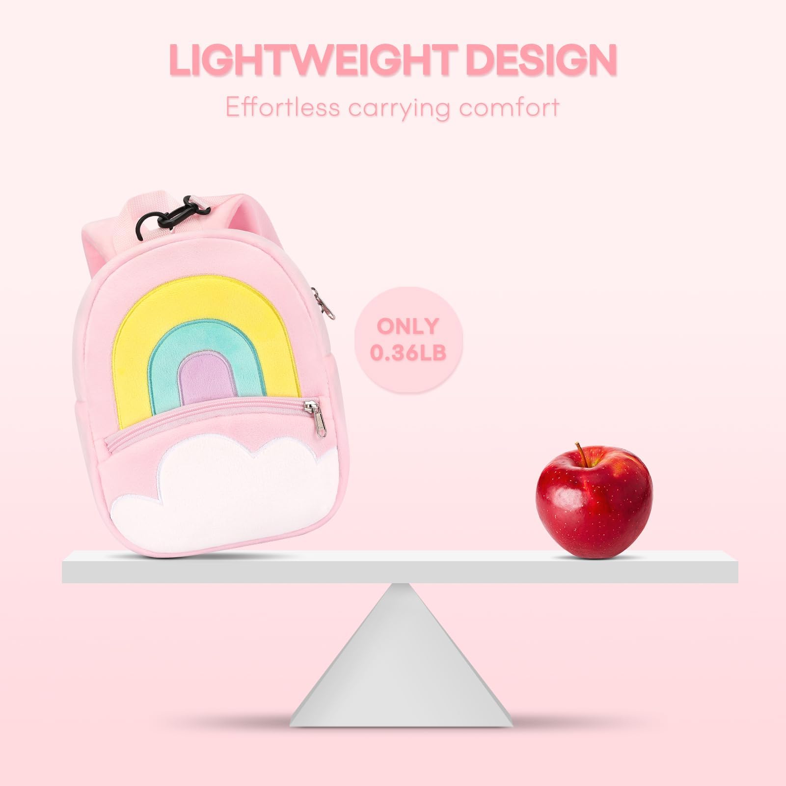 【LIGHT WEIGHT DESIGN】Only 0.36 lbs lightweight design and with a large pocket and cut animal shaped front pocket, this toddler backpack for girls 2-4 offers ample space for small diapers, toys, water bottles, cloths, pants snacks,etc. Great as a kids travel backpack for airplane.