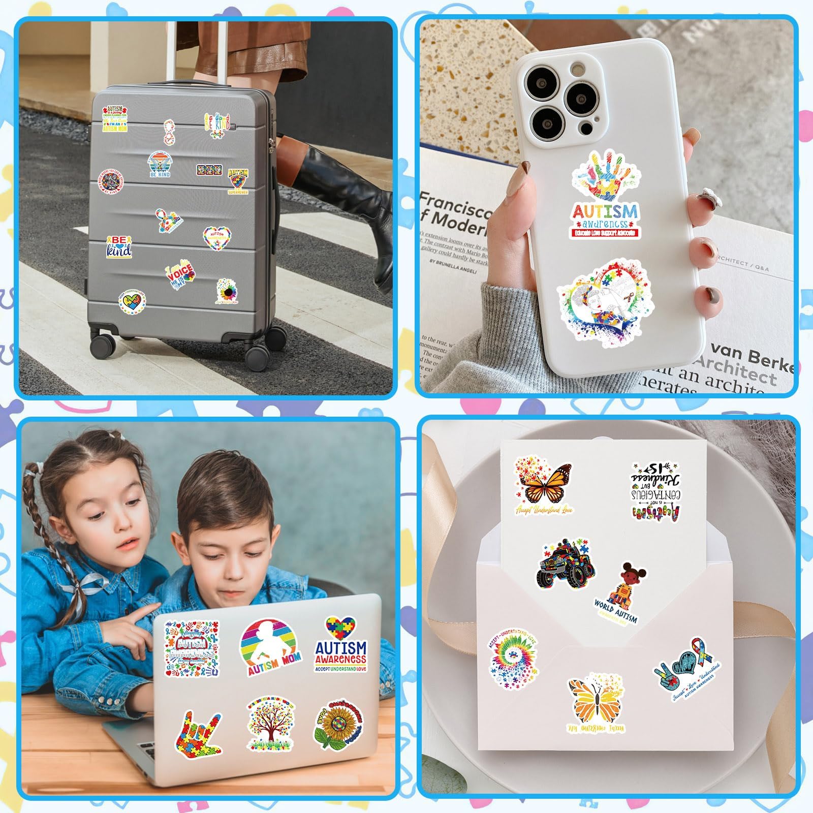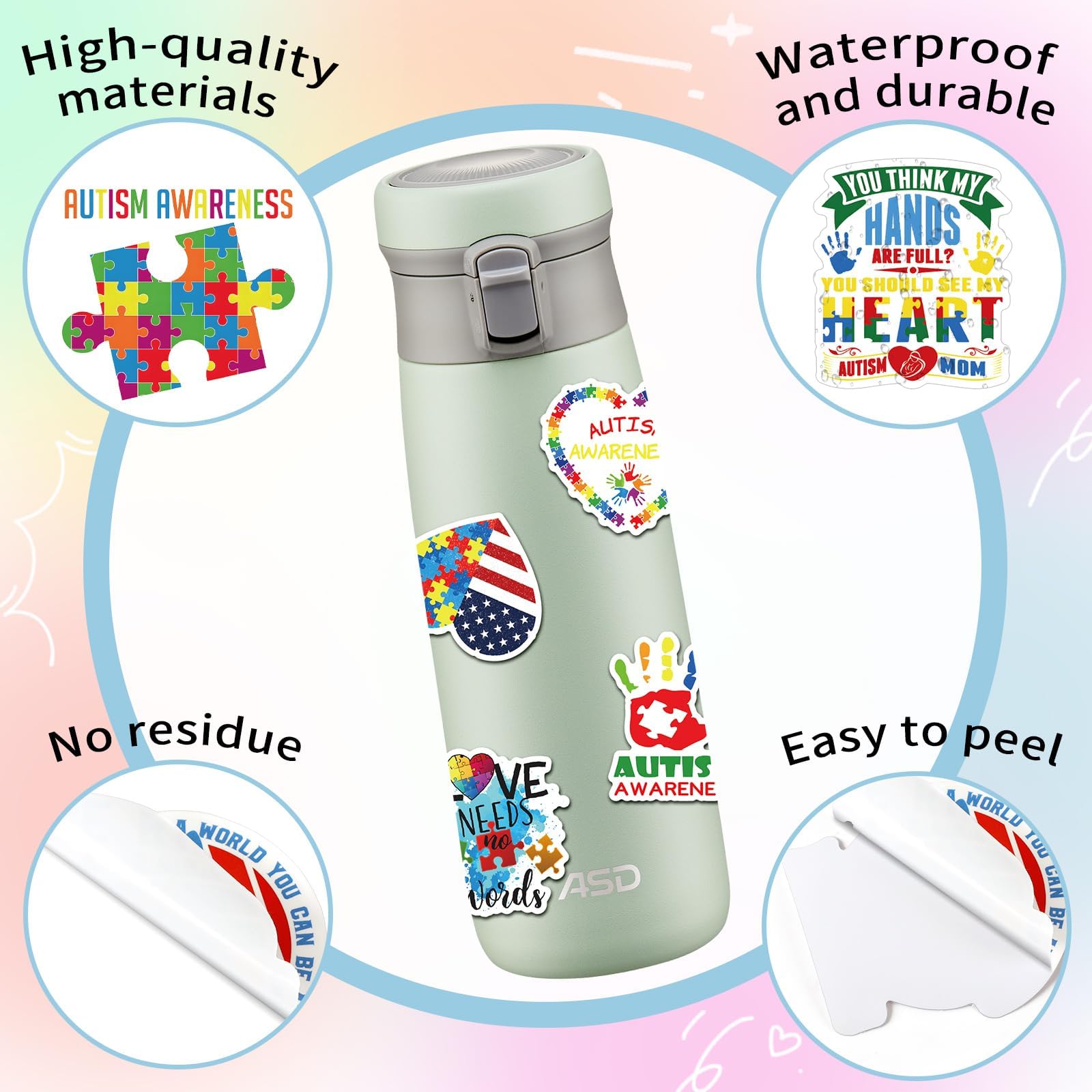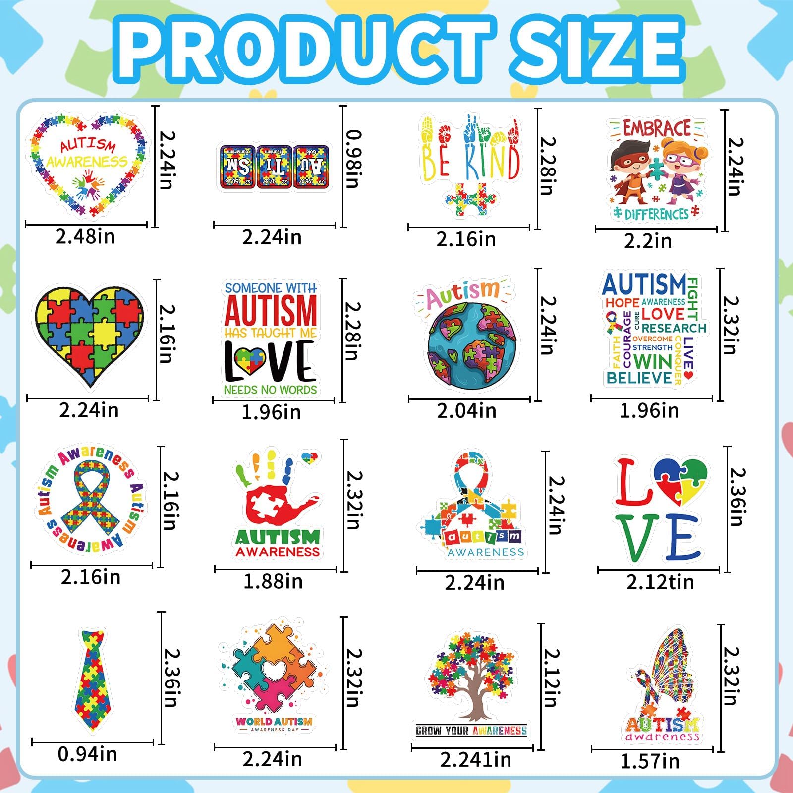 Package Content: Our Autism stickers set contains 100 pieces beautifully designed Autism awareness stickers for cars, each sheet of Autism stickers is 4-8 cm in size. These Autism awareness stickers convey the understanding and support of Autism with unique patterns and colors, aiming to enhance the public's knowledge and understanding of Autistic groups