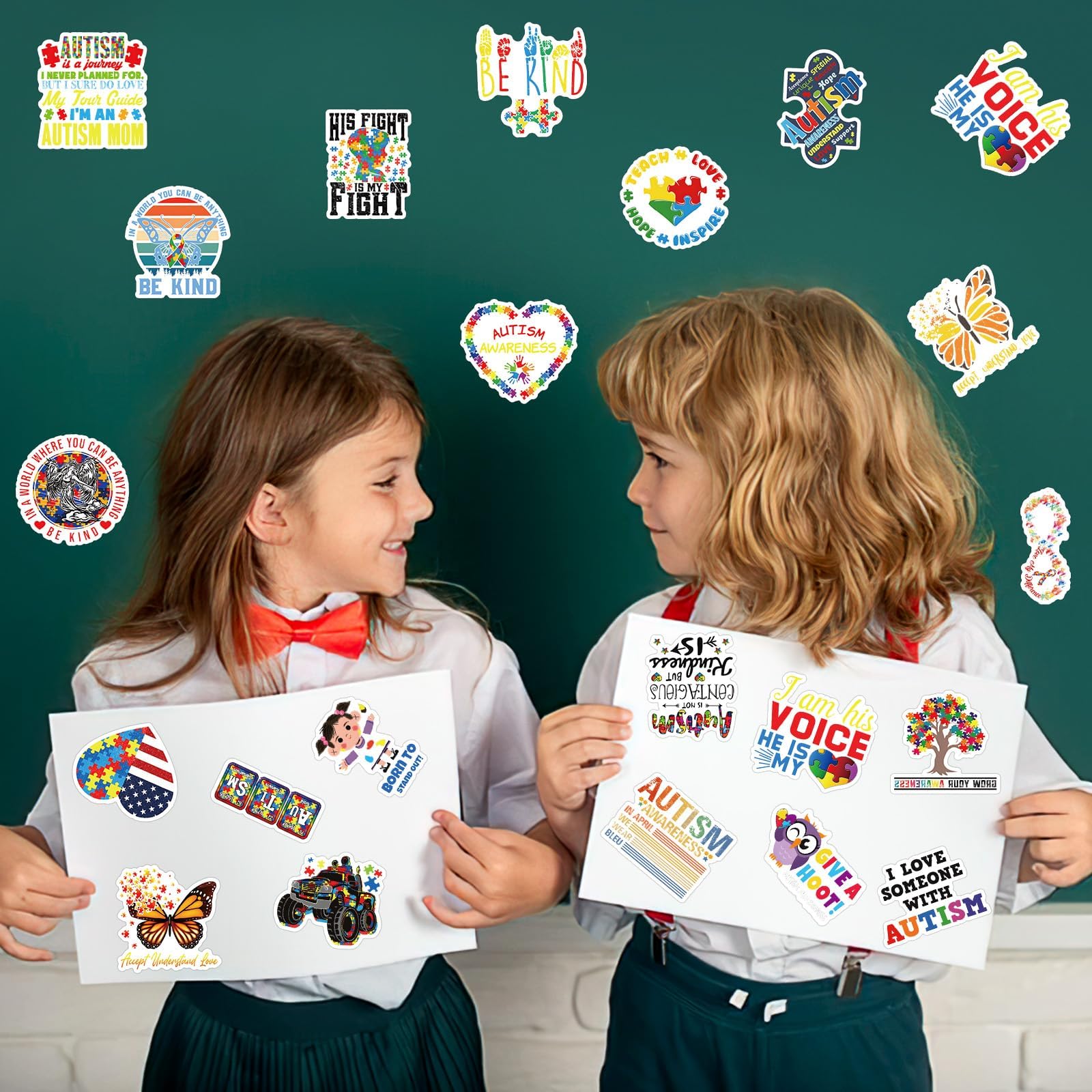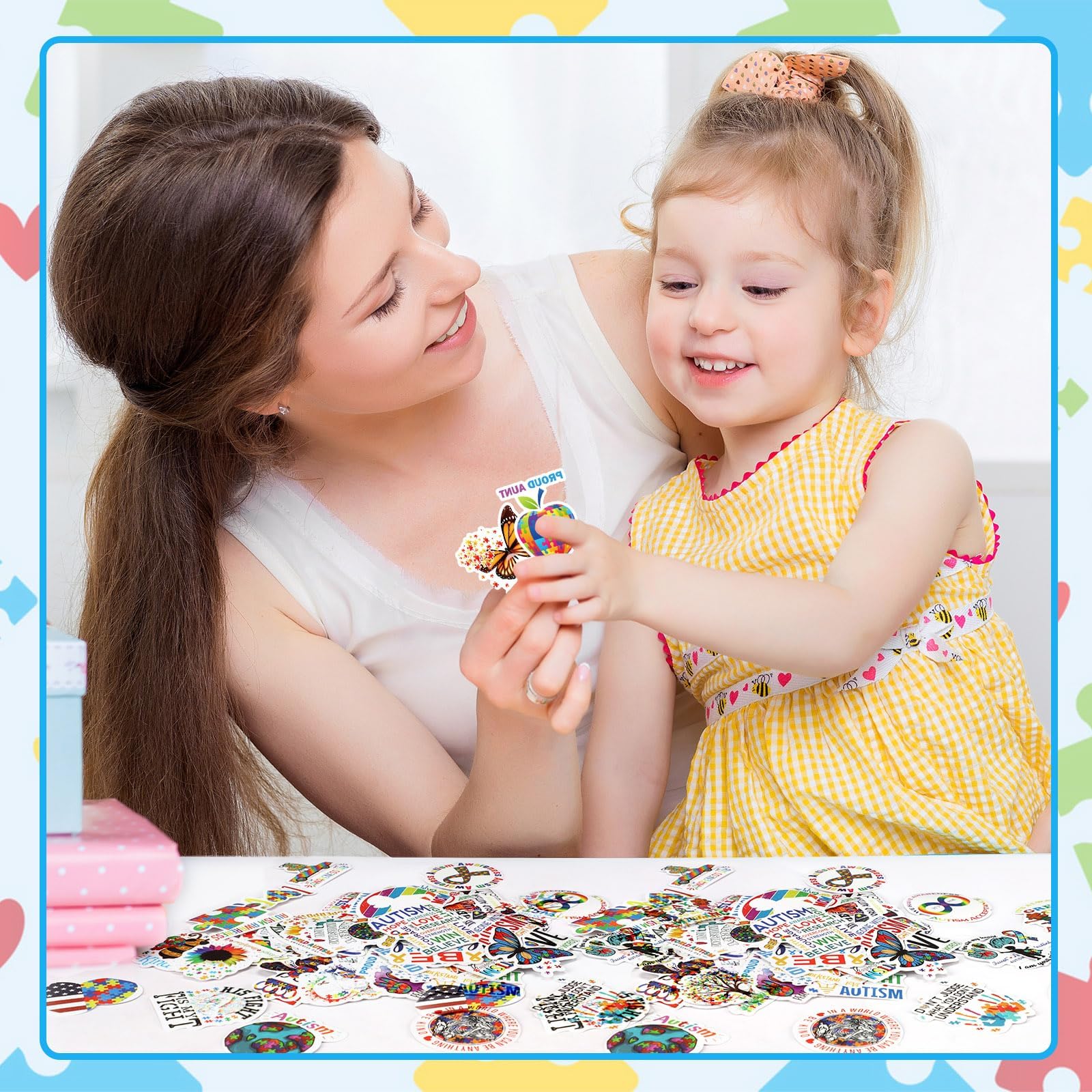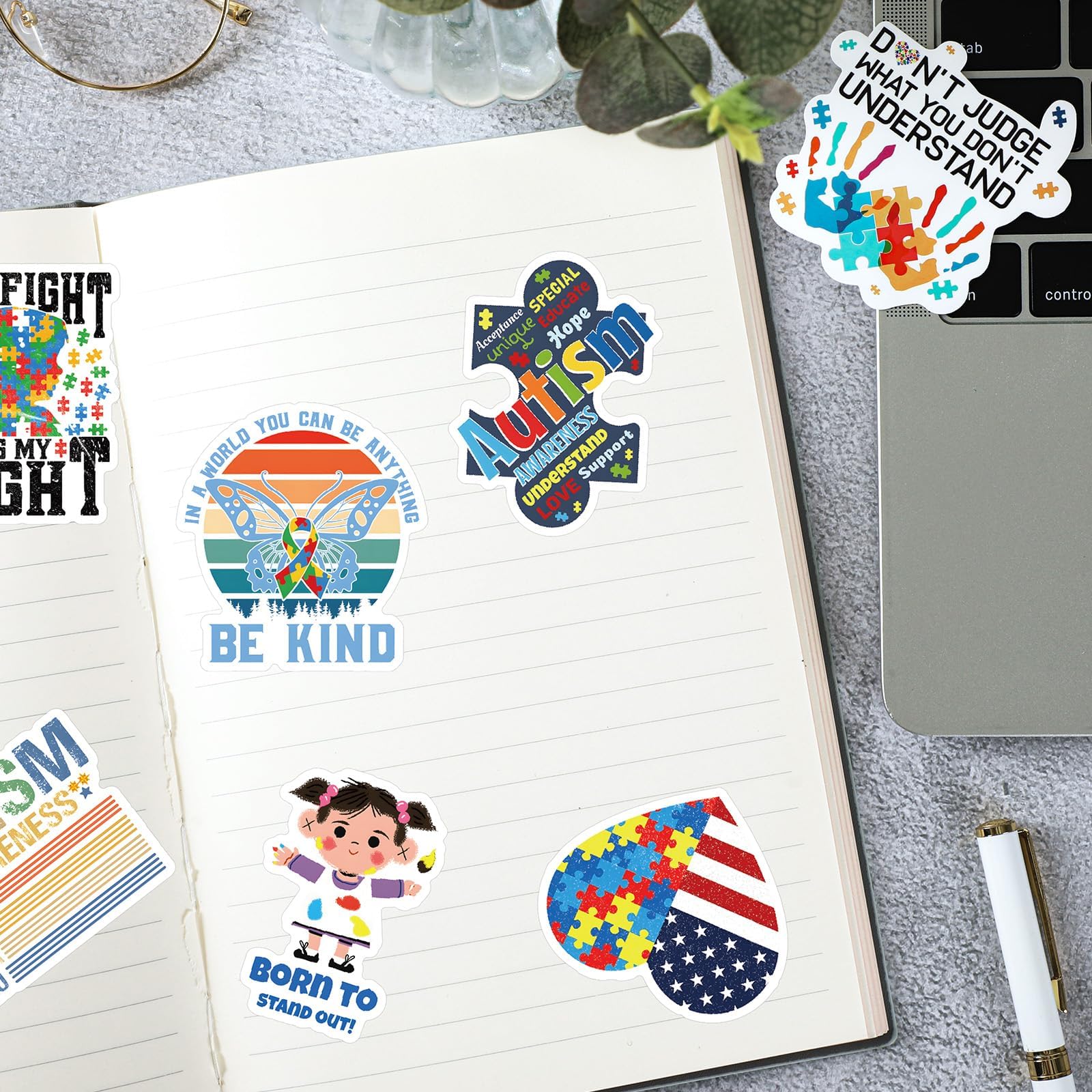 Package Content: Our Autism stickers set contains 100 pieces beautifully designed Autism awareness stickers for cars, each sheet of Autism stickers is 4-8 cm in size. These Autism awareness stickers convey the understanding and support of Autism with unique patterns and colors, aiming to enhance the public's knowledge and understanding of Autistic groups