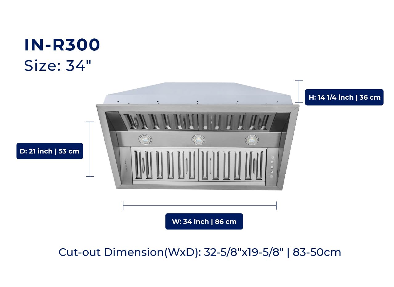 Customizable 3-Speed Fan Settings: Adjust the fan speed to match your cooking needs with easy-to-use buttons. This range hood insert fits perfectly into customizable hood shells, ensuring performance and style