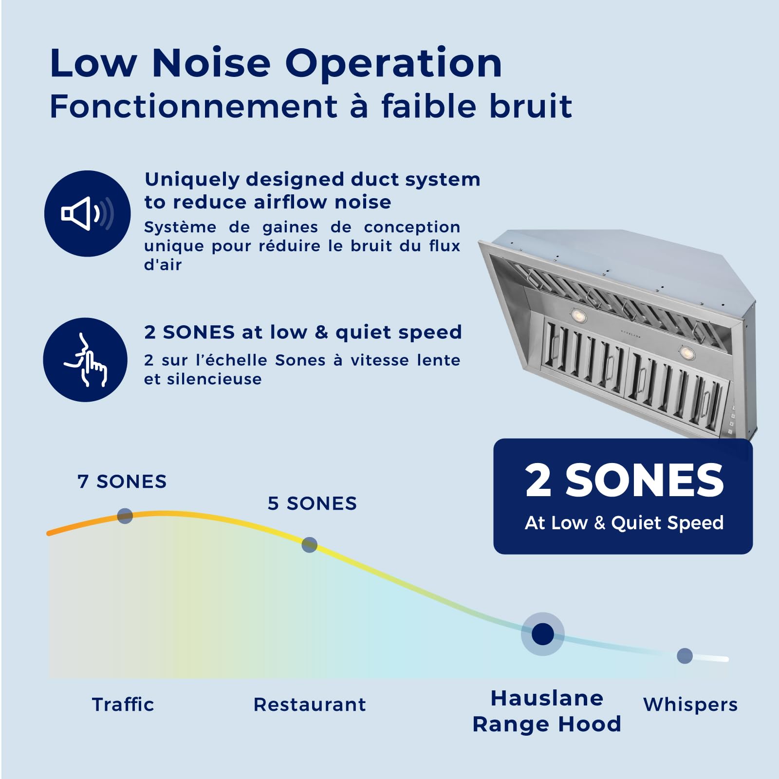 Quiet and Efficient Operation: Enjoy low-noise cooking with a specially designed duct system and powerful motor. Includes energy-efficient LED lights for improved visibility while cooking