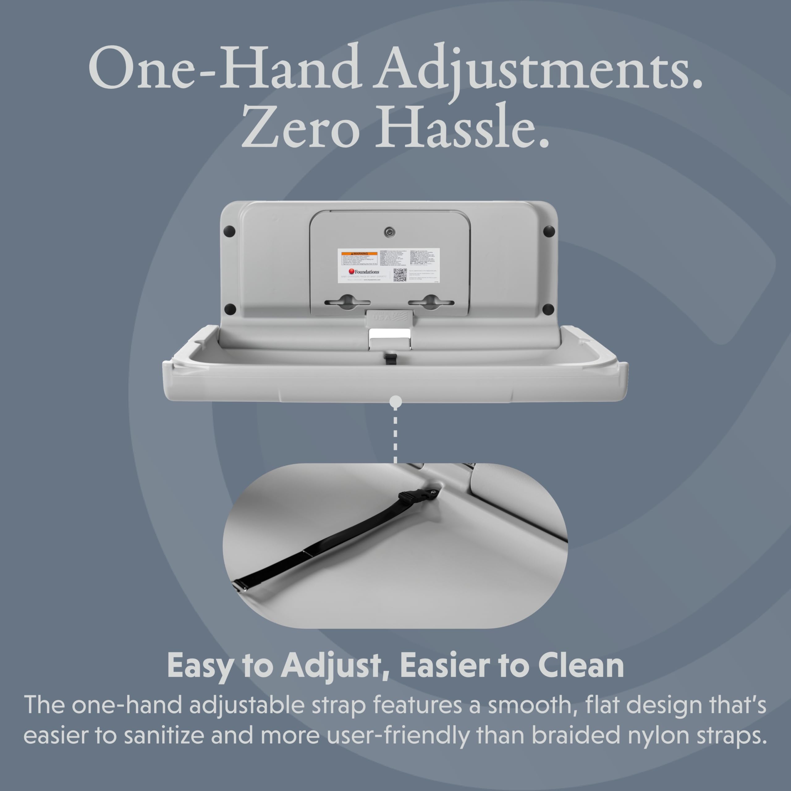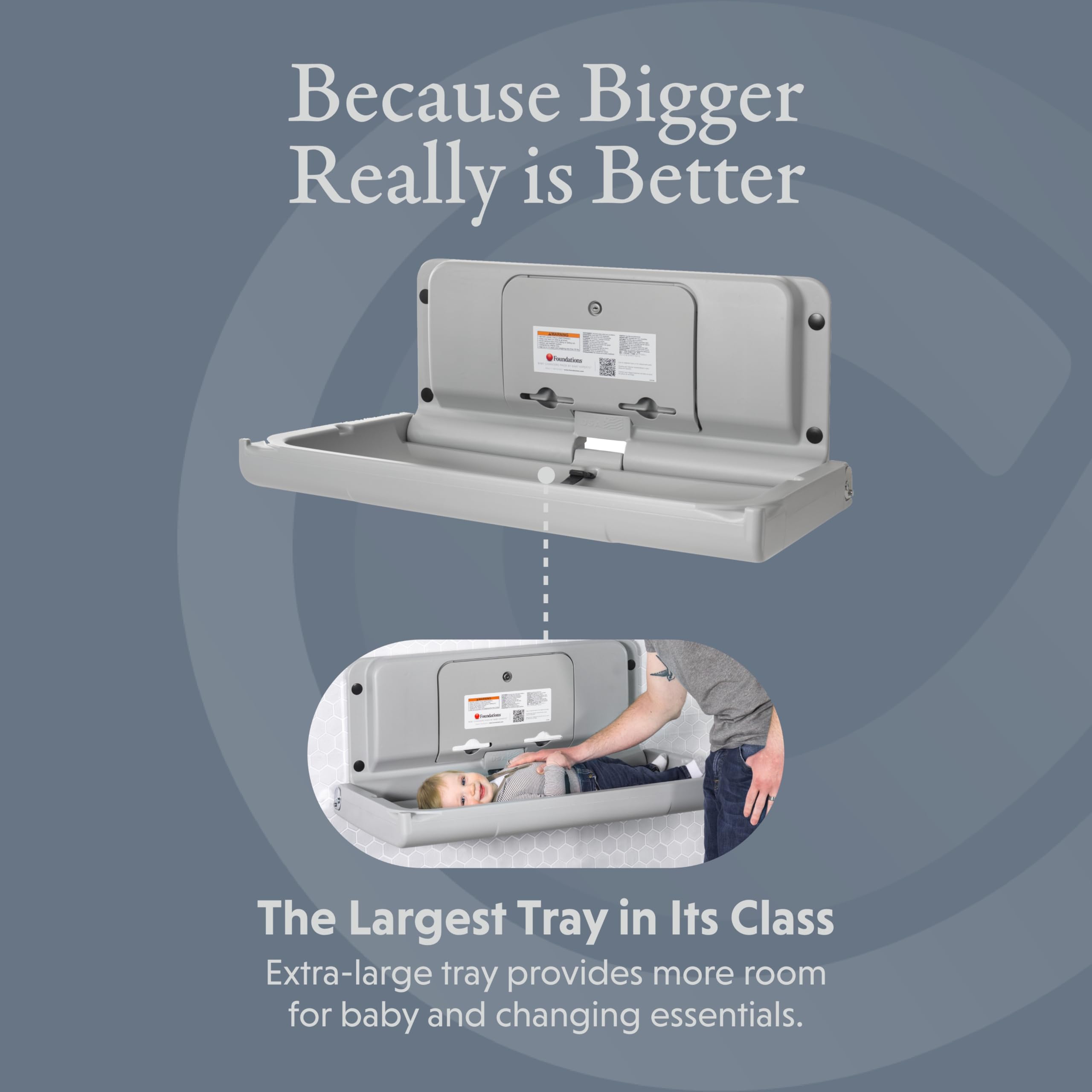 Foundations Ultra Horizontal Wall Mounted Baby Diaper Changing Station, Oversized Changing Surface, Plastic with Heavy Duty Stainless Steel Hinge - Gray (200-EH-01)