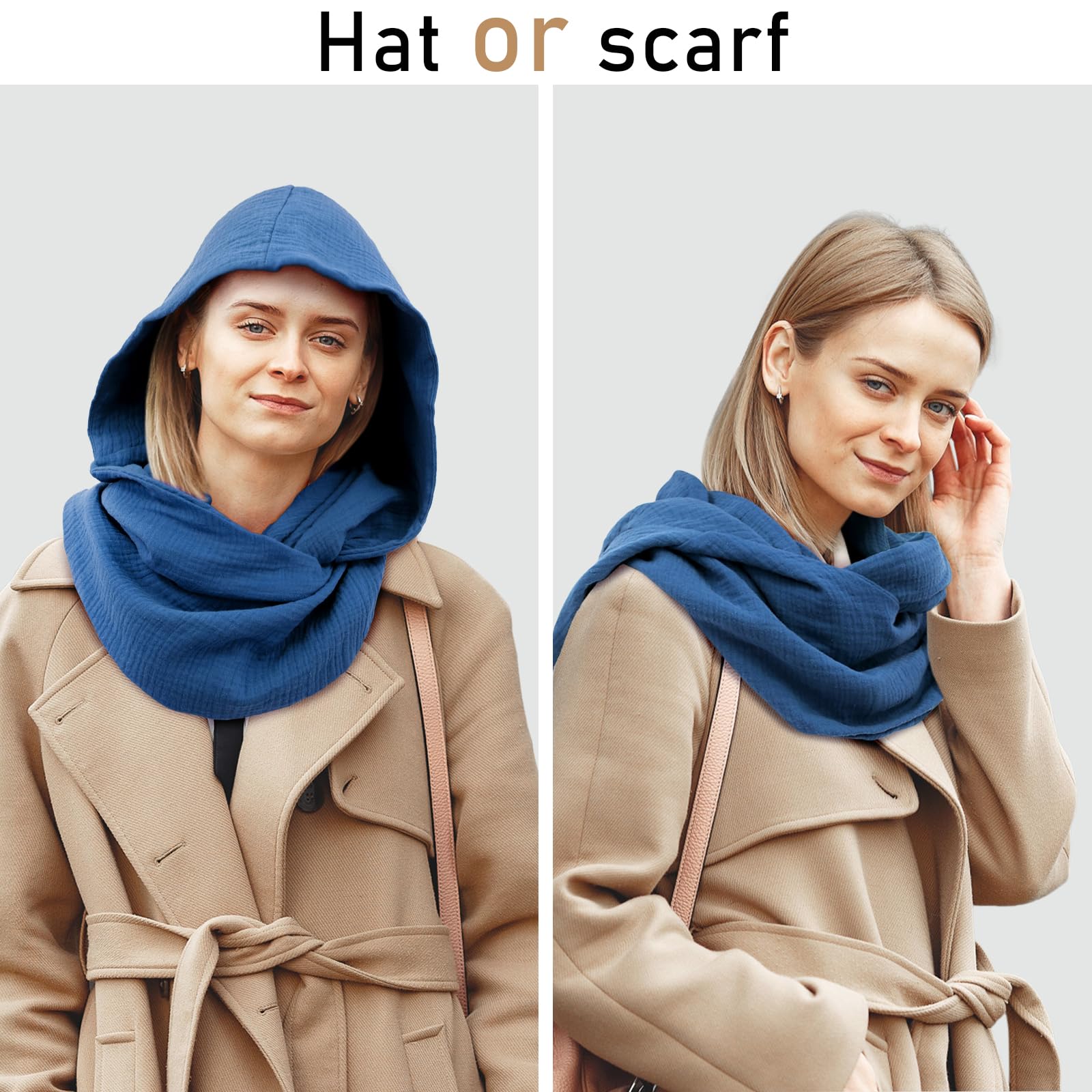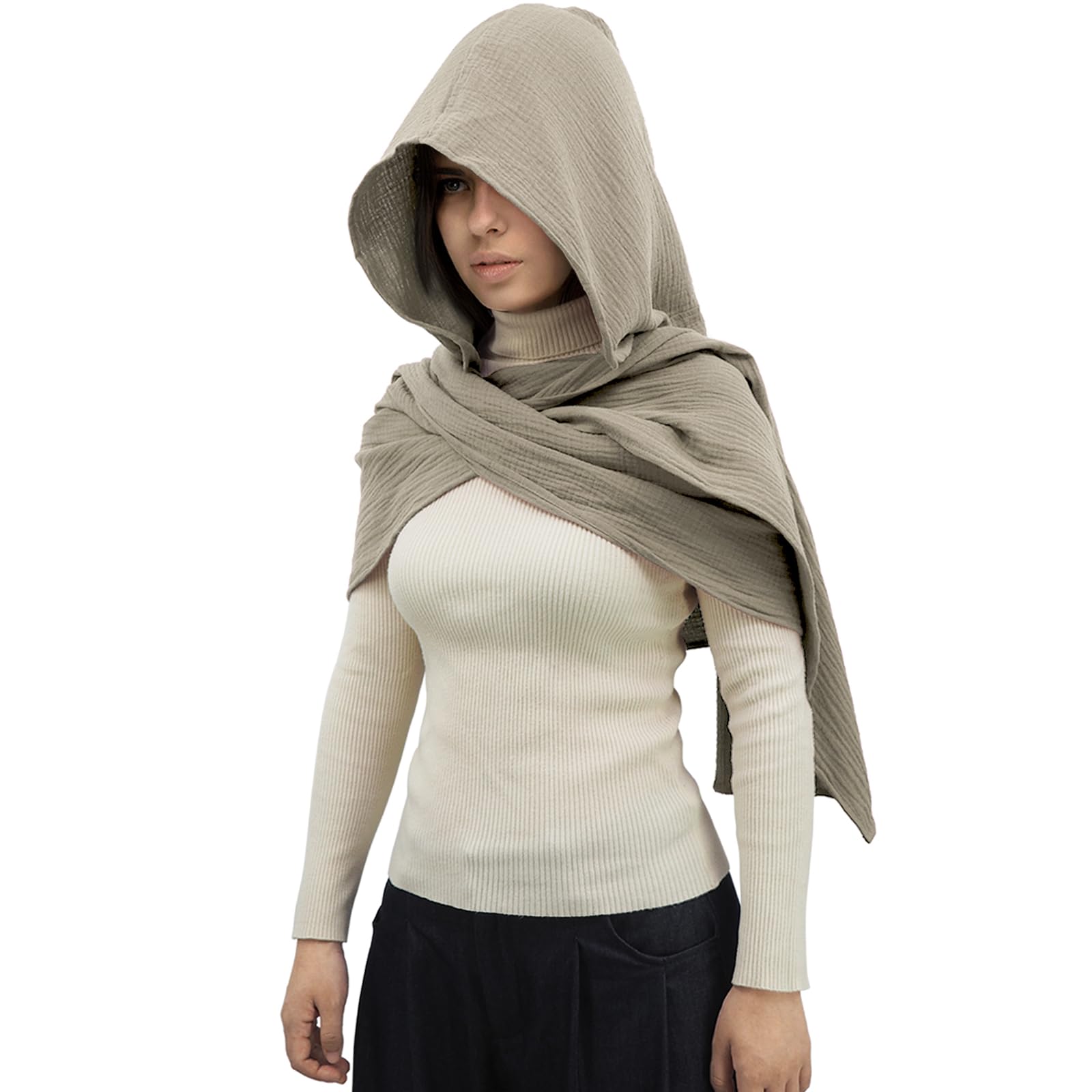 Upgrade Your Wardrobe: Our hooded scarf is a must-have for any season, offering endless style and warmth. It's a triple threat: a head cover, scarf, and wrap in one.