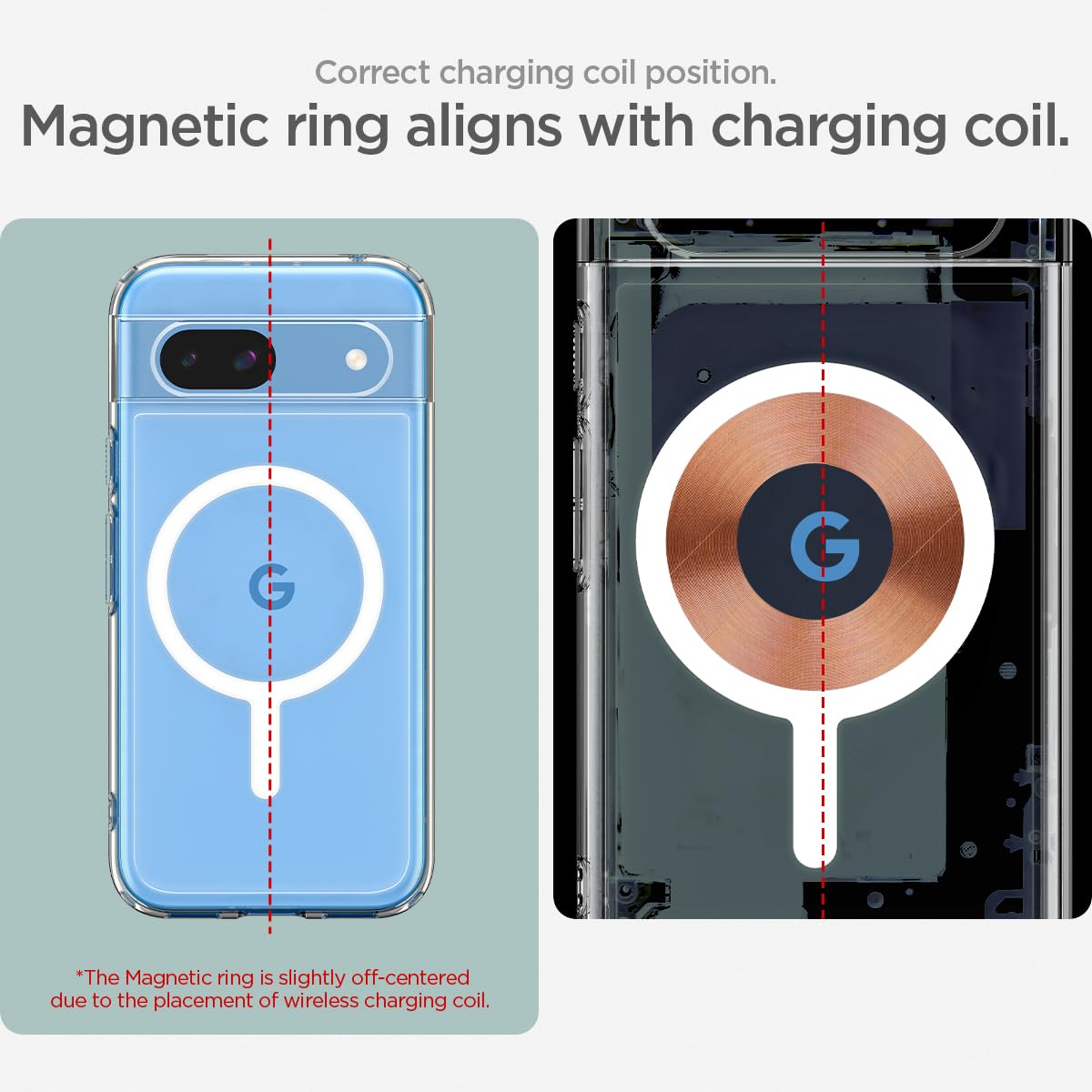The MagFit ring is positioned off-center on the case to match the off-center alignment of the magnetic ring within the device, ensuring optimal functionality and secure attachment