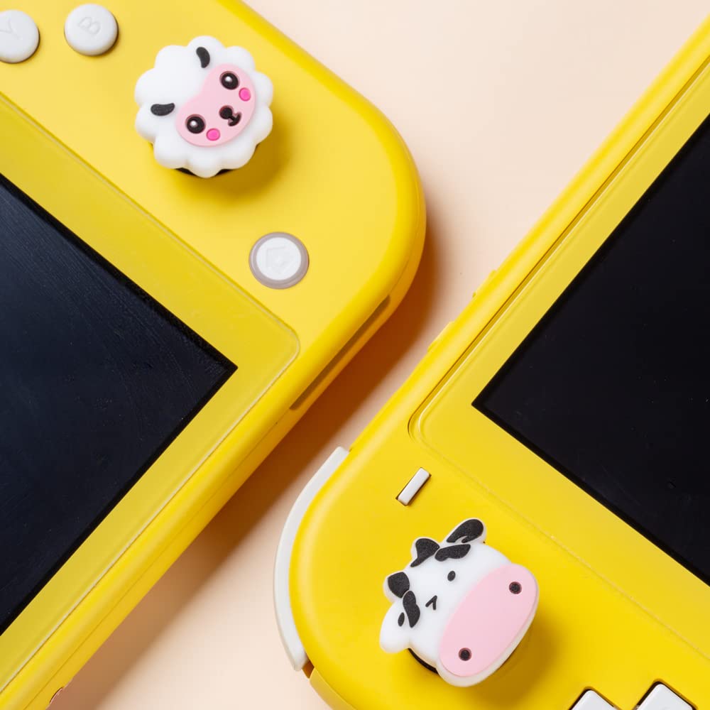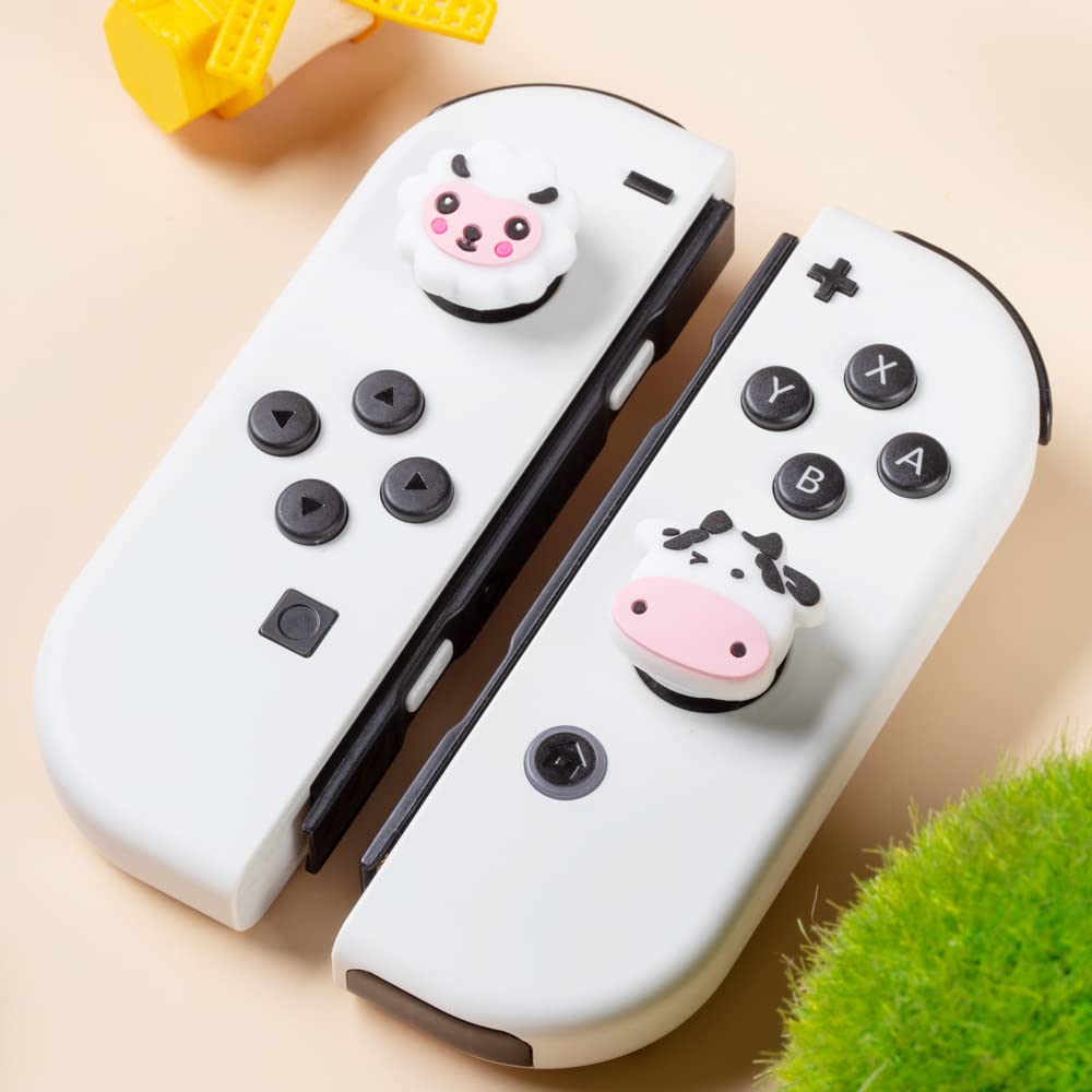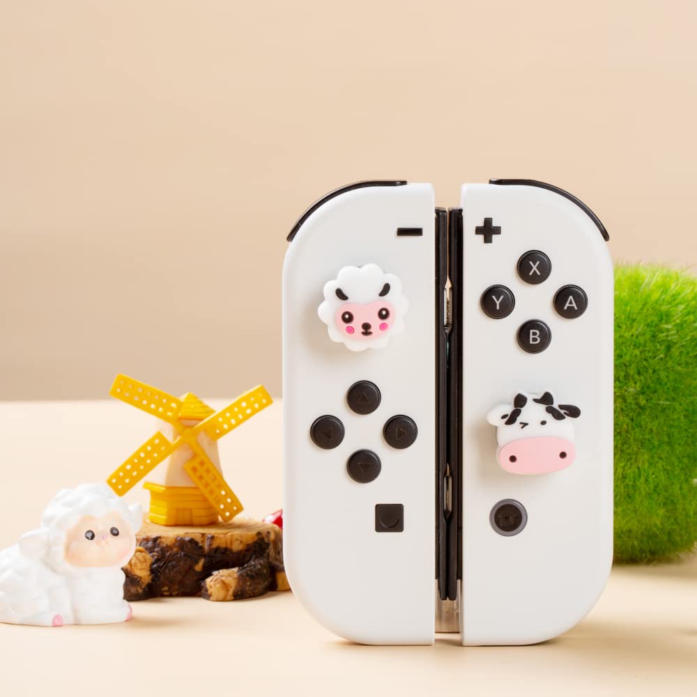 💗【Cute Lovely Original Design,Eye-catching Decoration】You will get 2 Pairs (4pcs) cute cow and sheep Joy-con thumb grips. Come in 2 colors and 2 different styles, adds flavour and vitality into your game, It is lightweight and thin, make your Switch and Switch Lite look more attractive, not bulky
