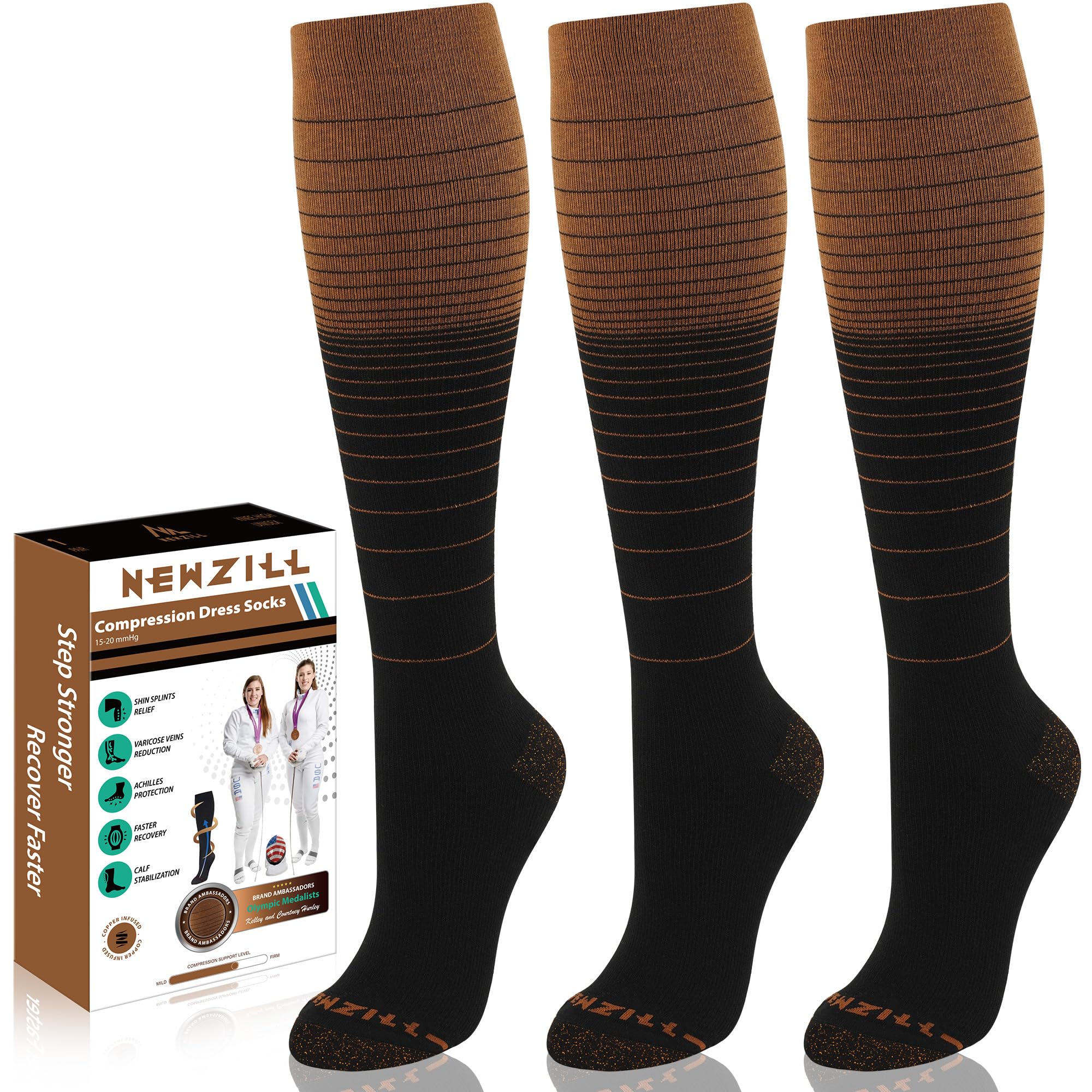 【COMFORTABLE & STYLISH】Newzill knee high dress compression socks are made of 60% Cotton, let your feet stay comfortable and dry in a variety of weather settings. Our Dress Socks are great for business casual, office outfit, long hours flight and weekend wear; you'll always look professional and stylish while enjoying the utmost comfort