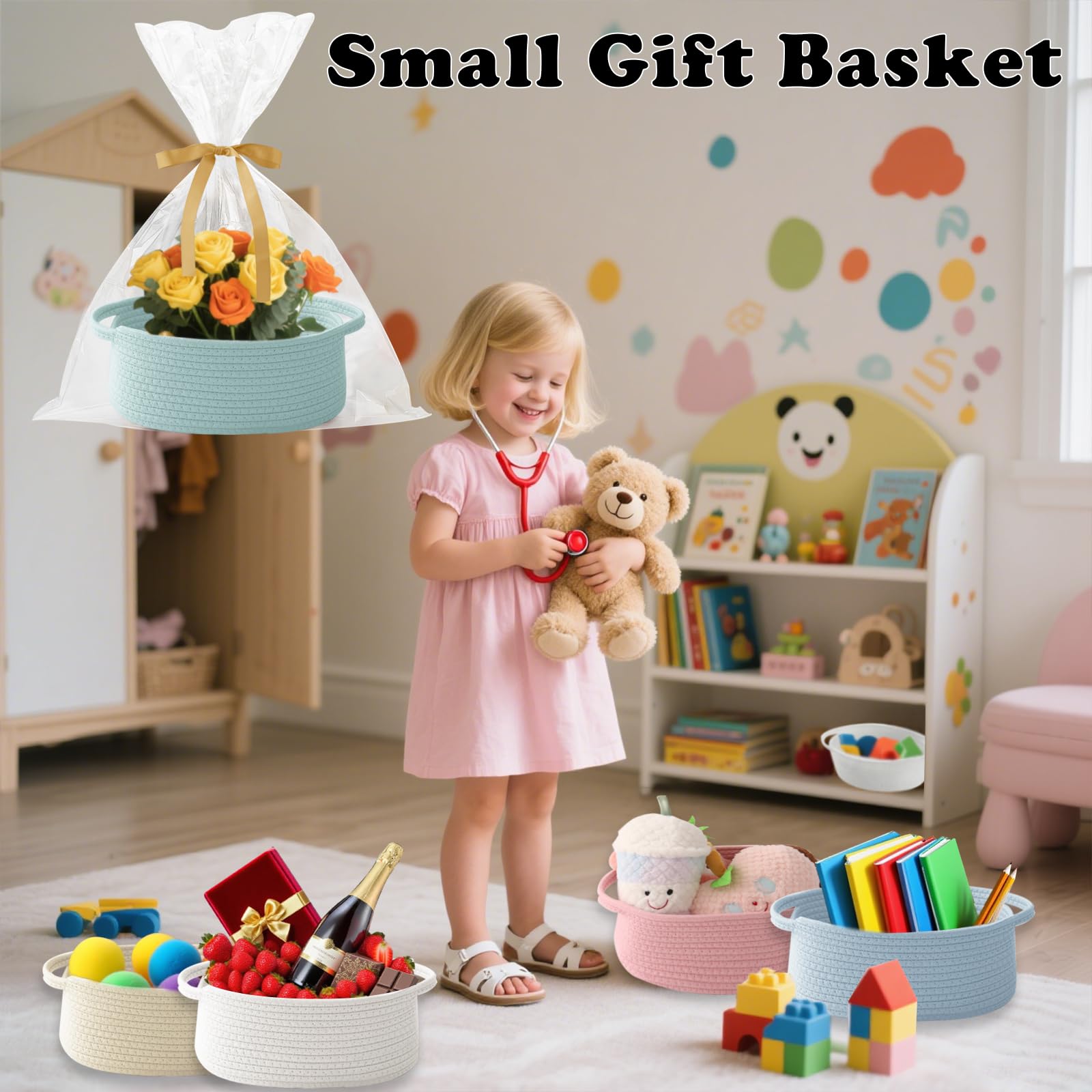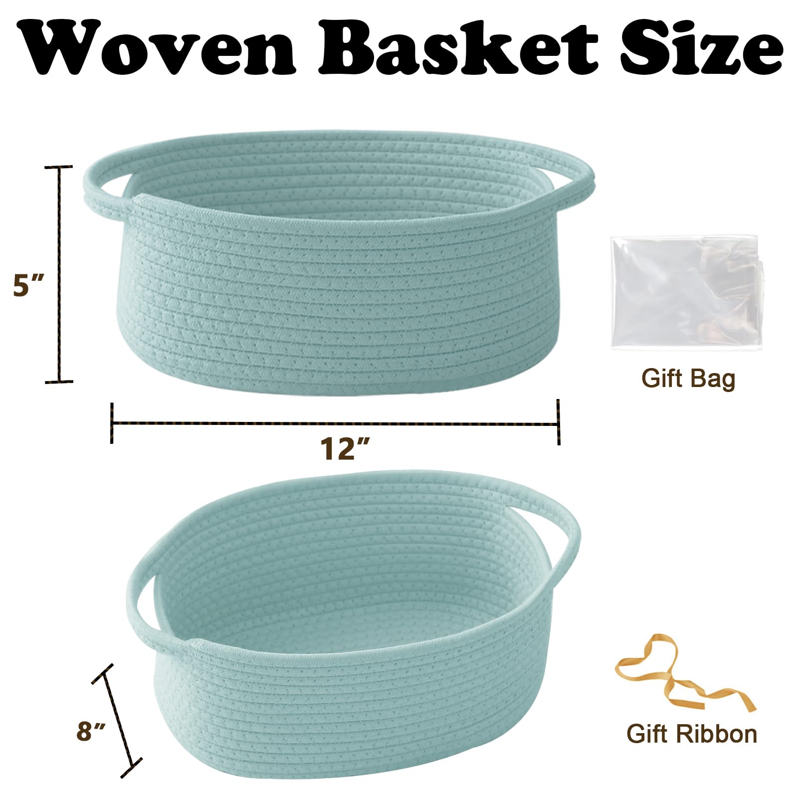 【Small Gift Basket】Handcrafted for Strength, Stability and Beauty.Storage basket measures 12" L x 8" W x 5" H, Use it to organize small items, The basket itself is also a great gift
