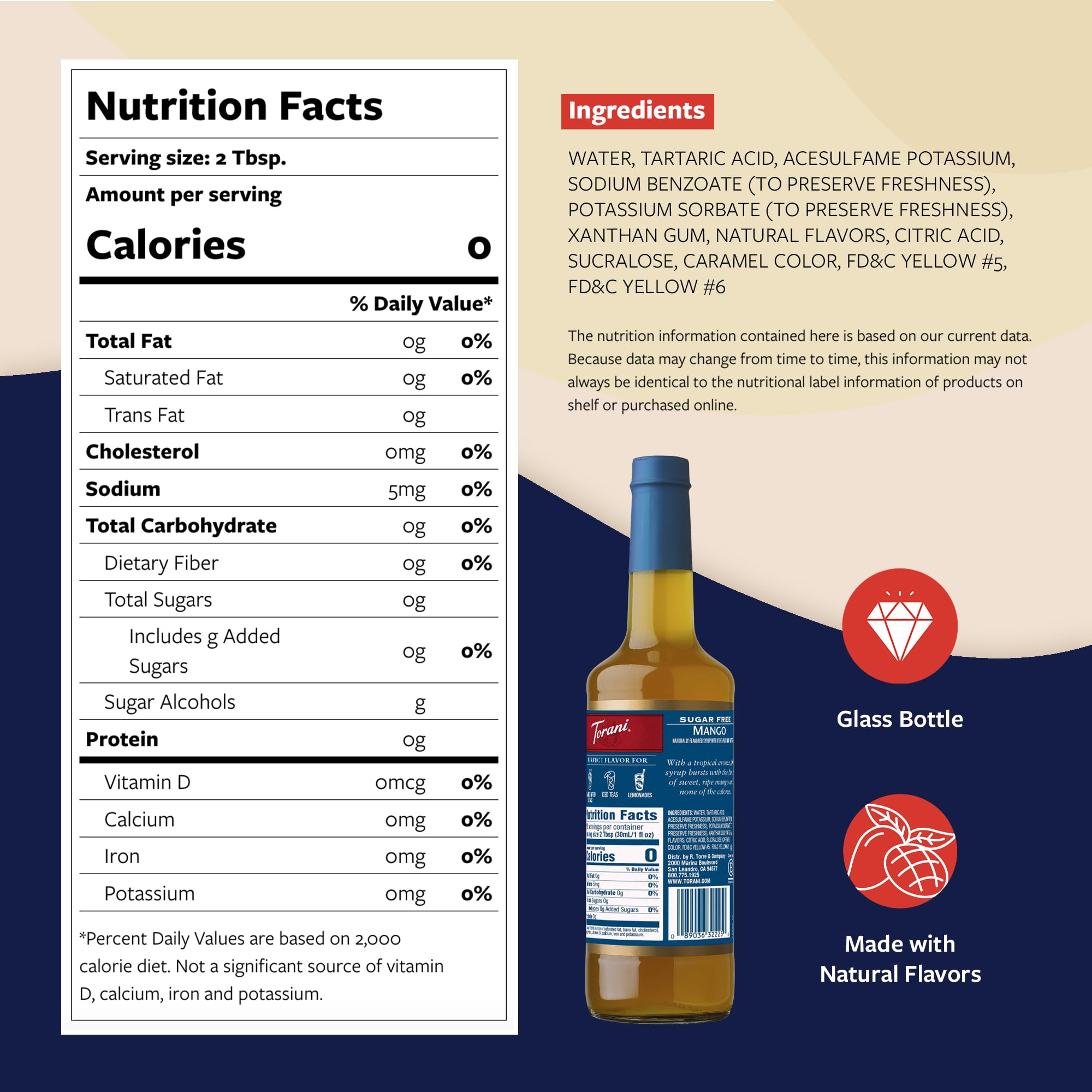 CONVENIENT & MESS-FREE: The large 750 ml Torani Sugar-Free Mango Syrup glass bottle comes with a pump, ensuring mess-free sweetening.