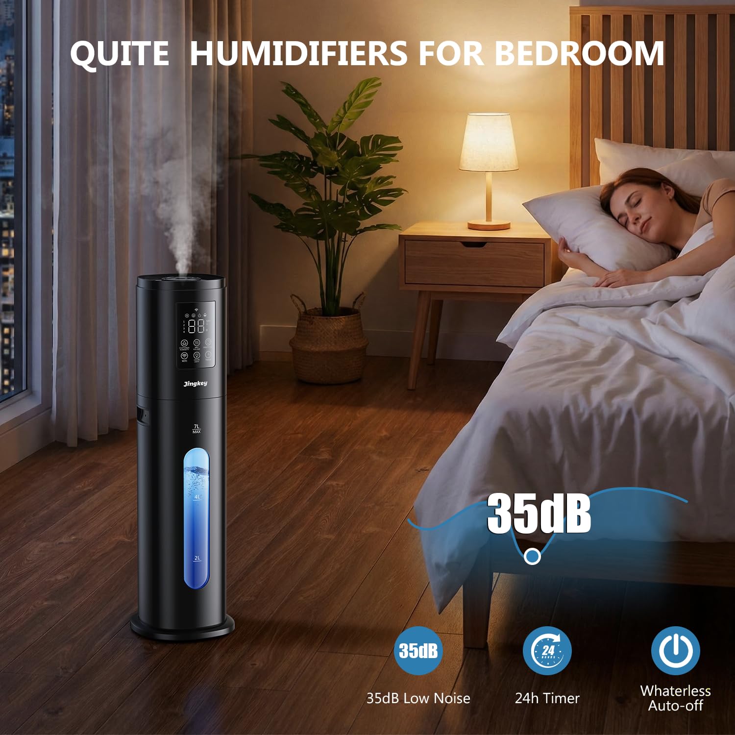 【Sleep Mode & 24H Timer】: This plant humidifier indoor with 7-color night light, can help create a relaxing effect for better sleep.Humidifiers for bedroom baby has a noise level of only 35dB and one button sleep mode, humidify your bedroom without interrupting your sweet dream.1-24 hours Timer function for setting the running period.