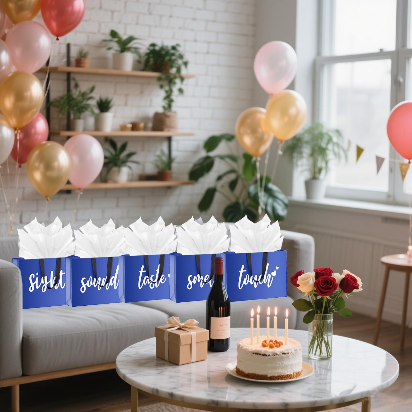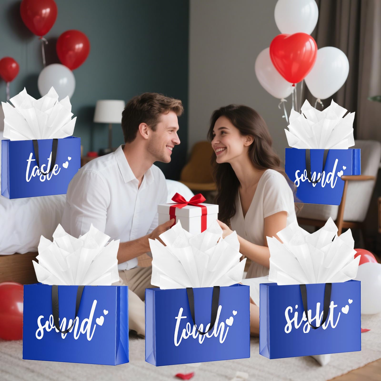 5 Senses Gift Bags Five Senses Gift Bags with Tissue Paper for Anniversary, Valentine's Day, Birthday Five Senses Gift Bags for Him Husband Boyfriend Features: These 5 senses gift bags add a unique and personal touch to your presents, allowing you to convey your sentiments through each of the five senses. Whether you're celebrating a birthday, anniversary, or any special occasion, these bags are the perfect way to show how much you care Specification: Material: thick cardboard paper Color: as the picture shown Quantity: 5 Pieces in total Package Content: 5 x gift bags NOTE: Please allow 1 - 2 mm error due to the hand measurement