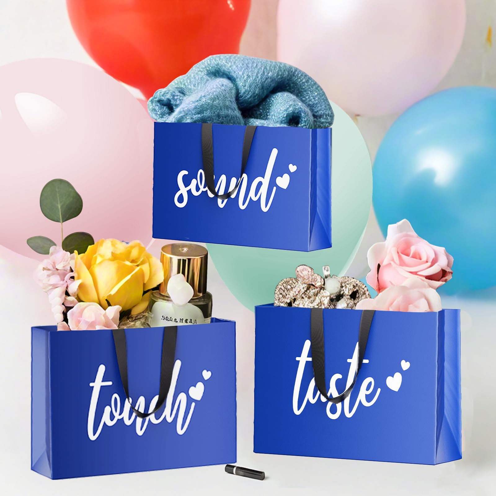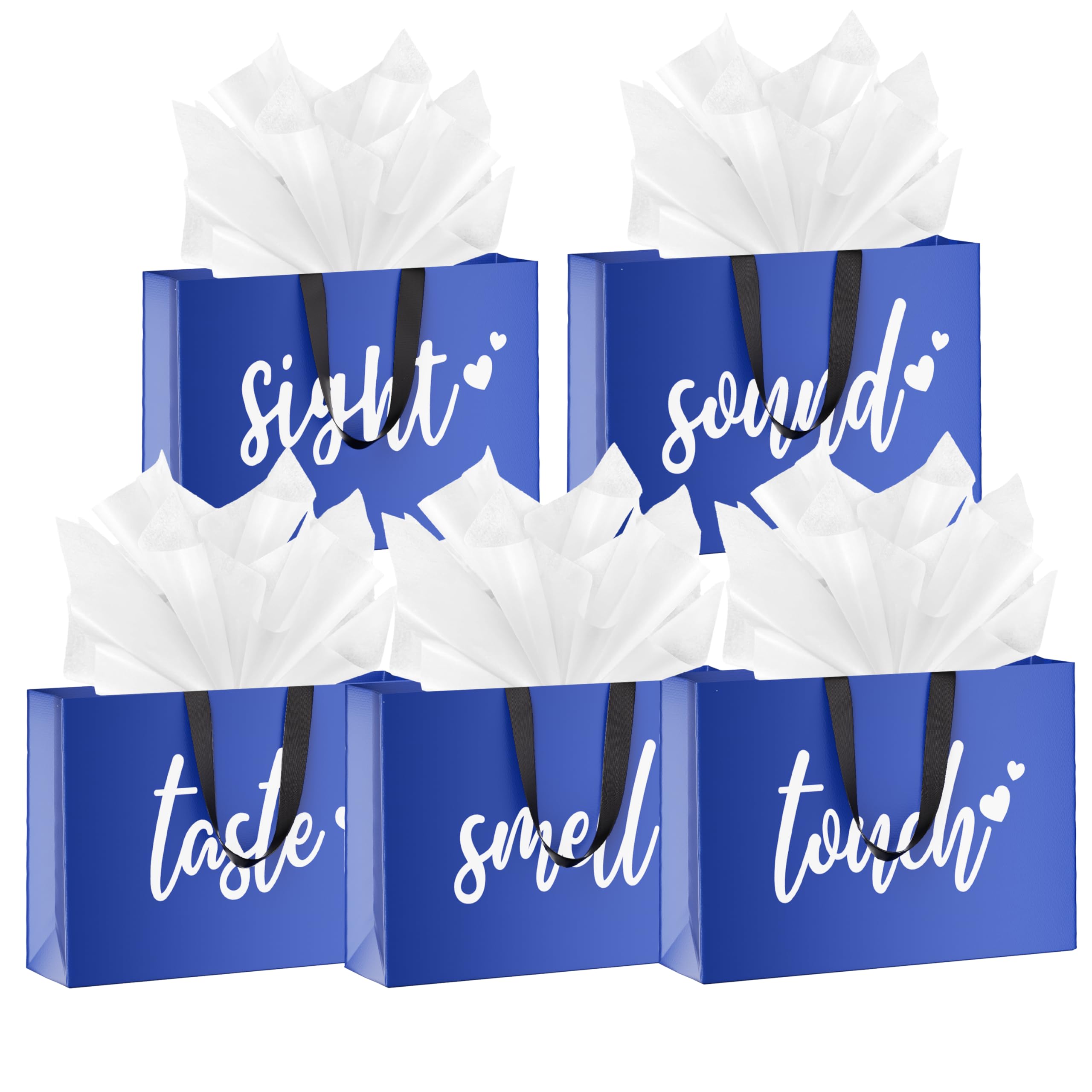 Package included: come with 5 senses gift bags designed with the words [Taste], [Touch], [Smell], [Sound] and [Sight], and 10 pieces of tissue paper, the perfect set for your "Five Senses" themed gift, and these 5 senses gift bags are a wonderful way to show your affection on birthdays, anniversaries, Valentine's Day or any occasion