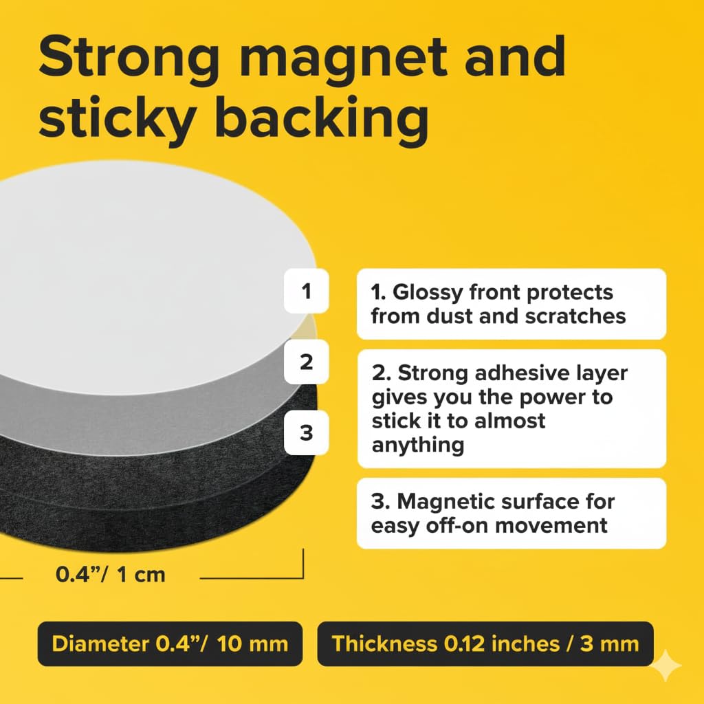 STRONG ADHESIVE BACKING: These magnetic dots are sticky magnets that are prepared to stay. Our magnets with adhesive backing are a great way to hang photos or to-do lists on your refrigerator.