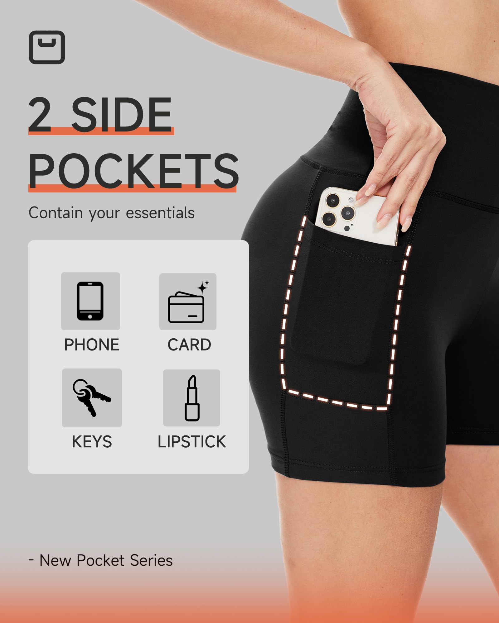 SMART STORAGE, ANYWHERE - Quality spandex shorts women designed with 2 side pockets, to keep your essentials secure on the go. Perfectly sized for your phone, keys, wallet, and more. These biker shorts with pockets offer hands-free convenience. It's more than a pocket; it's your portable storage solution.