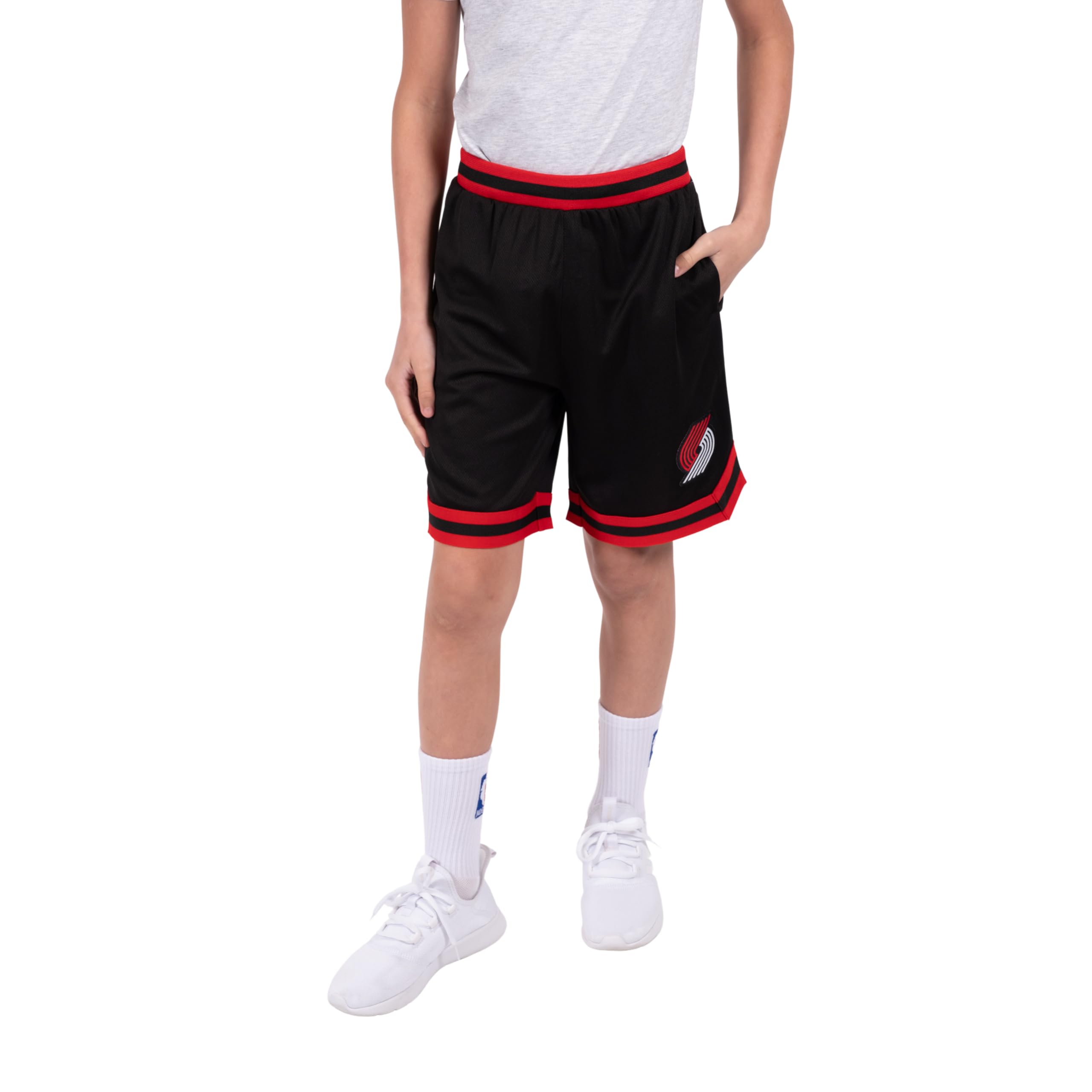 FUNCTIONAL AND STYLISH DESIGN: a black body create bold color contrasts with NBA team logos. Useful additions include two side pockets and a loose fit for unrestricted movement.