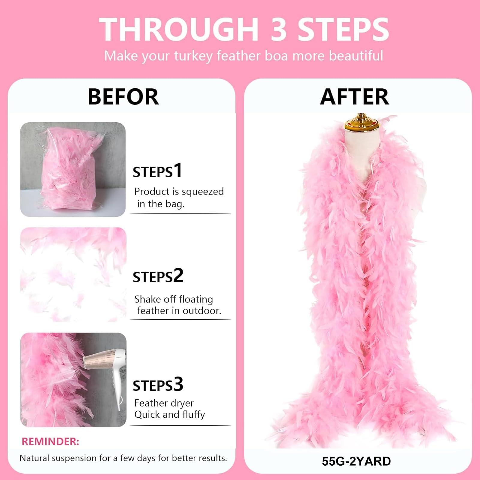 ❤️ Applications:These feather boas are perfect for dance performances,weddings,special events, Mardi Gras celebrations,Christmas parties, New Year’s Eve parties, Halloween parties, etc; also can be used on arts crafts project and holiday decoration.