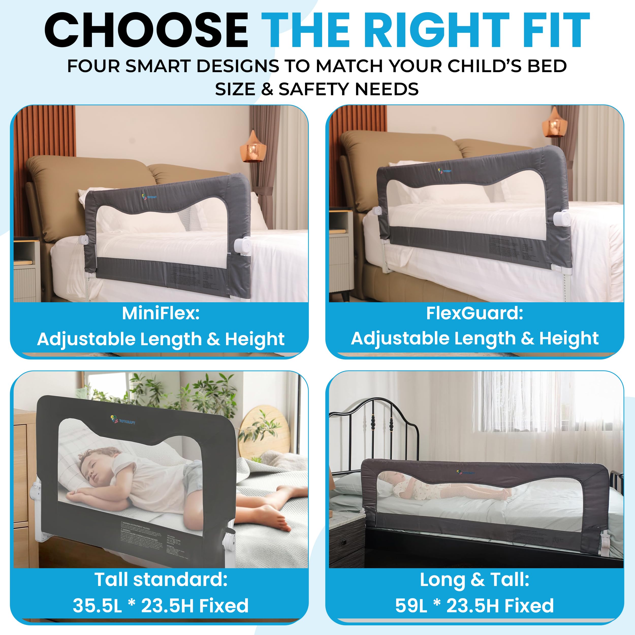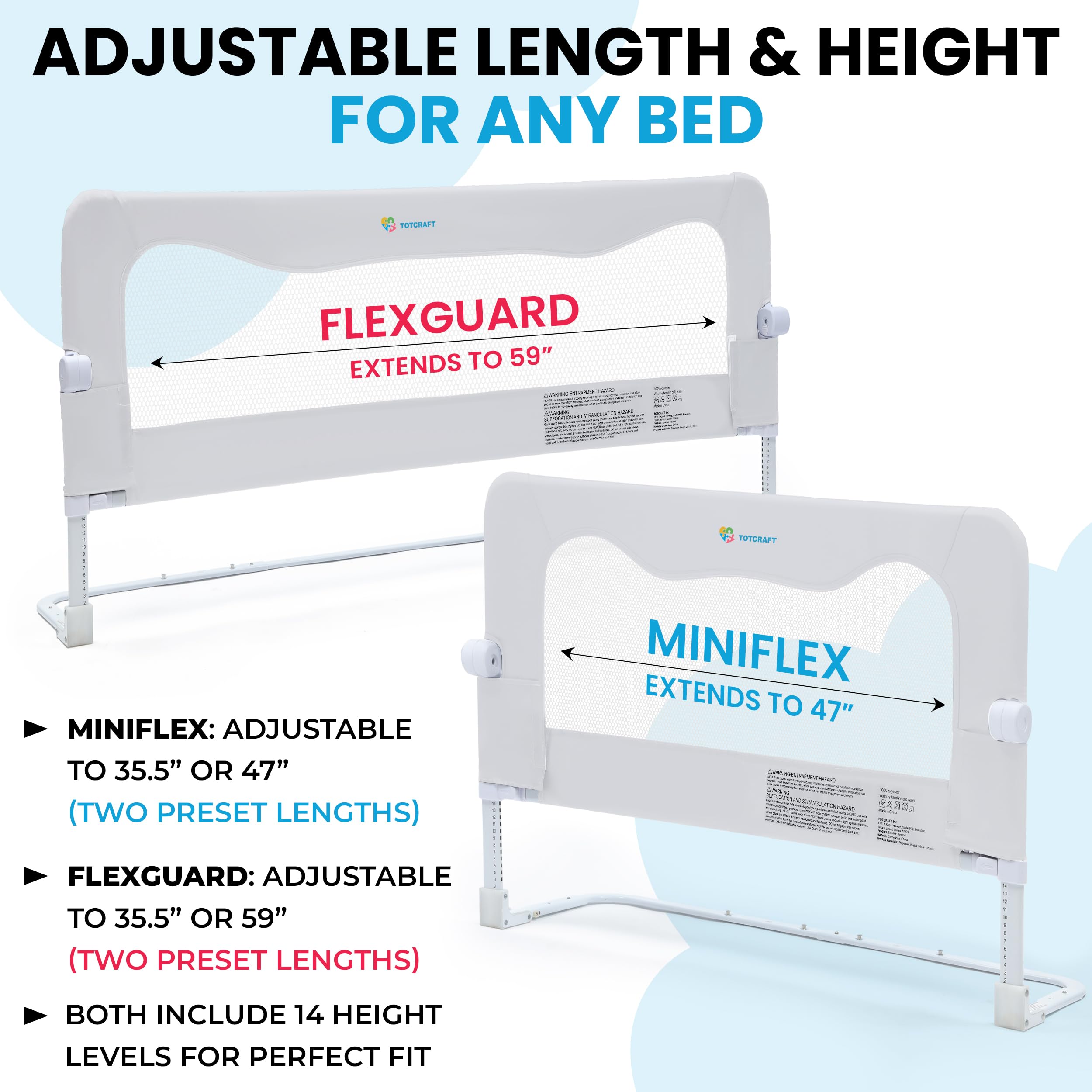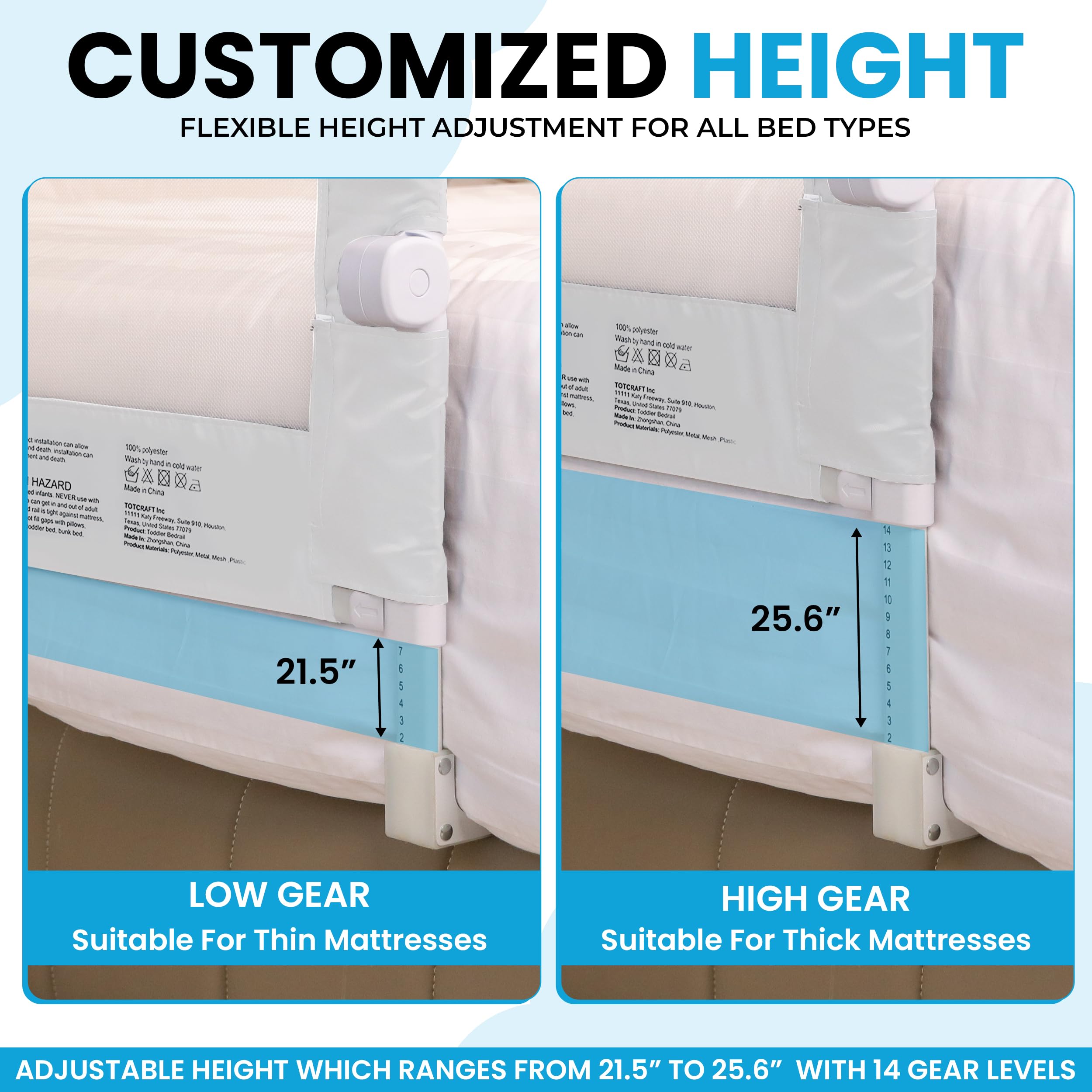 Engineered for Maximum Protection – Dual fixed length options (35.5″ or 59″) and 14 precise height levels for a secure, gap-free fit on any bed.