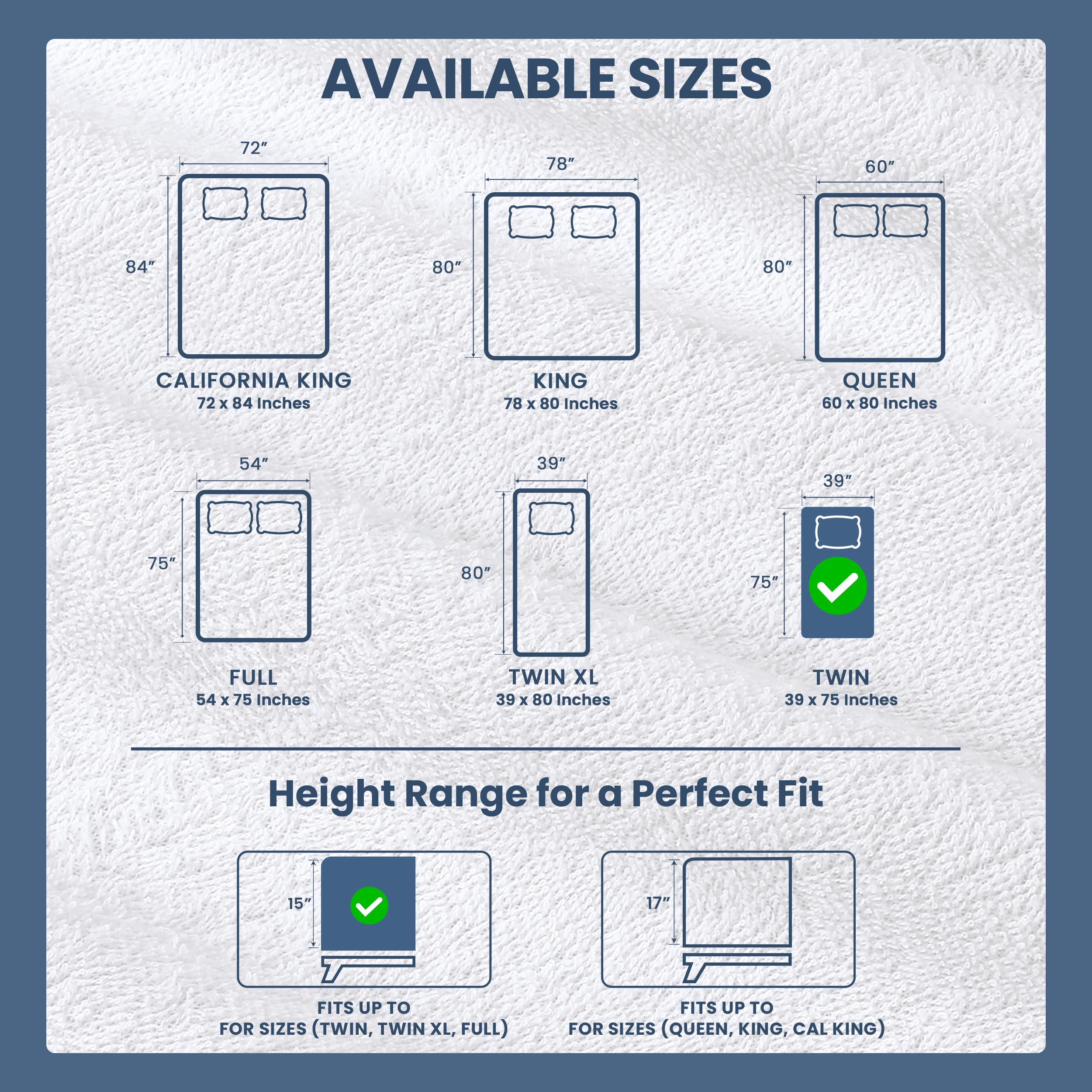 Mattress Protector - Fits Twin size mattress perfectly with dimensions 39 inches by 75 inches by 15 inches, featuring professionally turned hems and deep fitted pockets