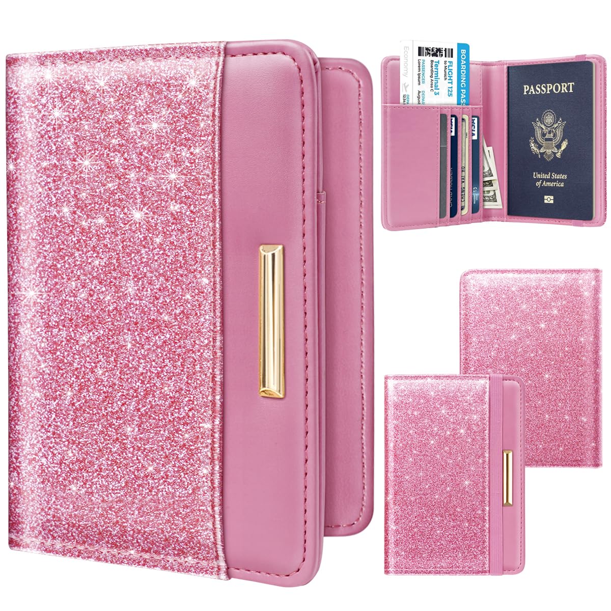 ★【Bling Stylish Women's Passport Cover】:Cute Passport holder case for women,bling bling stylish style,solid color with sparkly elements,never fade away,espeacially shinning in the sun,ideal gift choice, luxury style with contrast color matching design; Smooth and durable touch, provides you an amazing touch feeling.
