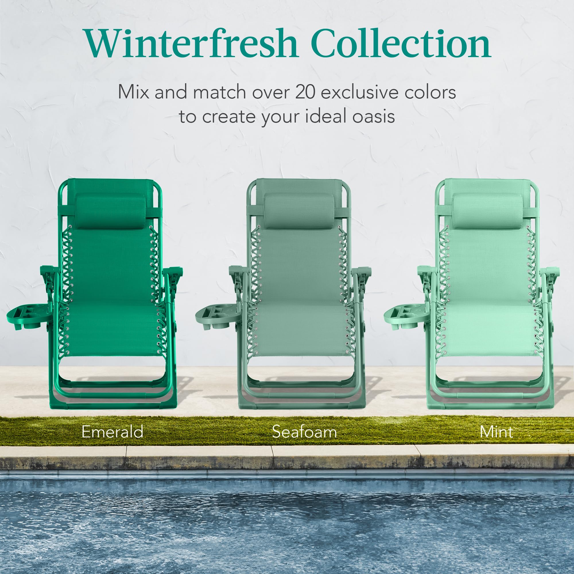 LOCKABLE RECLINING SYSTEM: Smoothly glide into an ergonomic zero-gravity position with removable elastic cords that immediately adjust to your body's weight