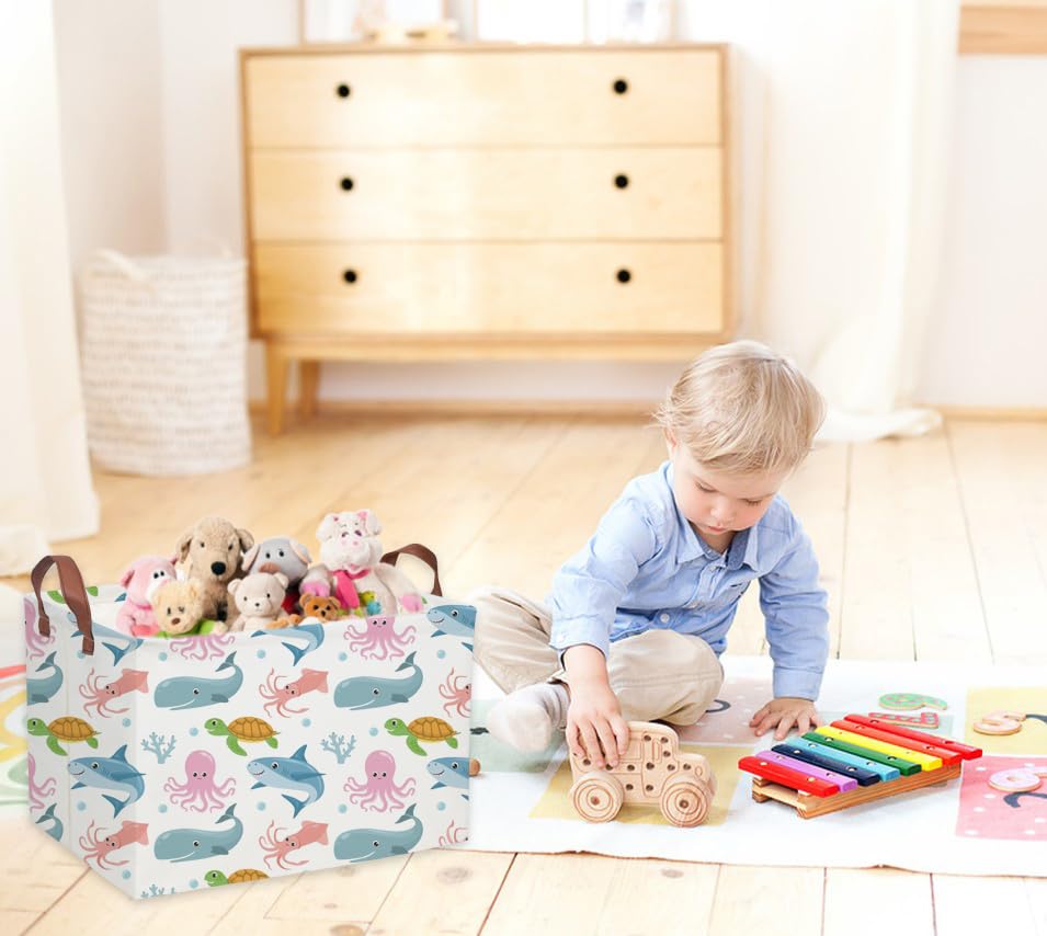 Material Leather Handles:The storage box equip with two strong handles,easy to move. Special extended leather handle, more convenient and durable. Application Children's' toys, magazines, craft supplies, and more with these sturdy. Everyday bins that can be tucked away in closets, side tables, under beds, left out in the open to enhance decor, or on a shelf. Note: Collapsible toy organizer bin ,Package by folding. Please understand that wrinkles may occur during transportation. if you have any question, please do not hesitate to contact us.