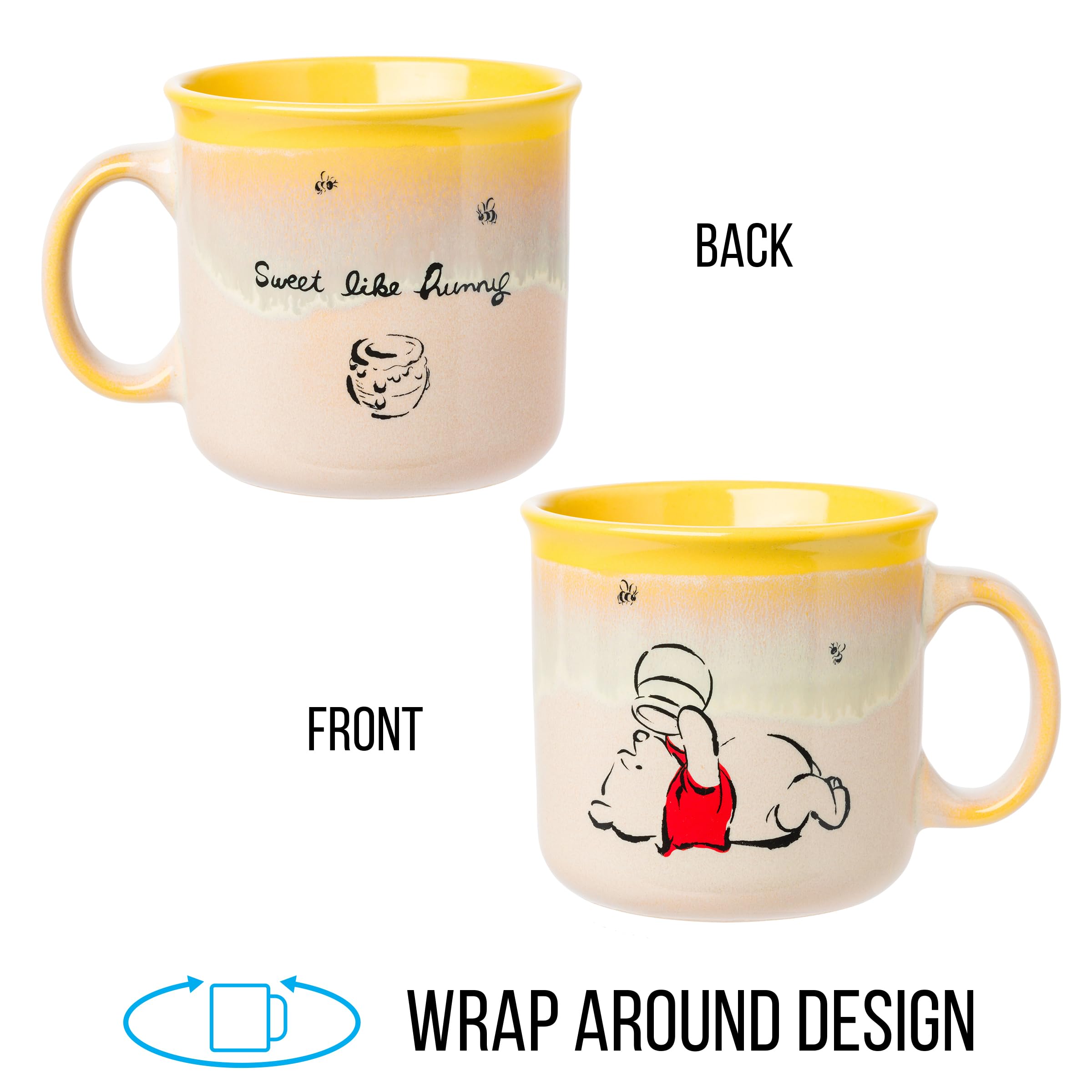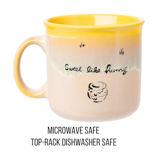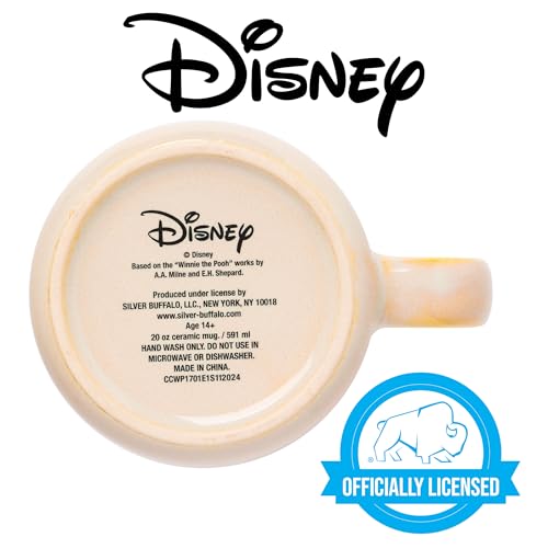 Enjoy your favorite beverages in this cozy mug! Ceramic mug features a two sided design. One side features Winnie the Pooh, laying on his back, holding a honey pot in the air. Opposite side of the mug has “Sweet Like Hunny” written on it in cursive. NOT microwave or dishwasher safe. HAND WASH ONLY. This 20 ounce mug is the ideal size for your morning tea, coffee, or beverage of choice. This mug can also be used as decoration to hold pens, pencils, or spare change. This ceramic mug, with its nostalgic designs, makes a great gift for your favorite Winnie the Pooh fan. Showcasing this beloved character, this item is perfect for birthdays, holidays, and other gift exchanges. Take a dive into the fictional world with Silver Buffalo! Silver Buffalo provides fans with official merchandise from their favorite characters. Working alongside licensors and brands, we create unique and imaginative products which are designed with great care and detail. Silver Buffalo aims to connect fans to their favorite cartoon characters, superheroes, movies, tv-series, and more. Celebrate your fandom!