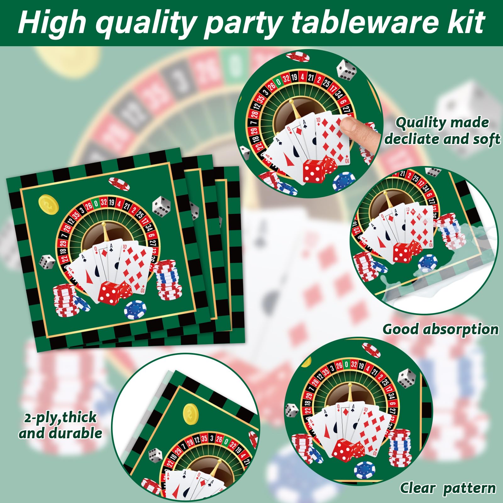 Unique design: The tableware pattern is composed of various elements of the casino, with playing cards, dice and other patterns, which is very suitable for casino theme parties or birthday parties.