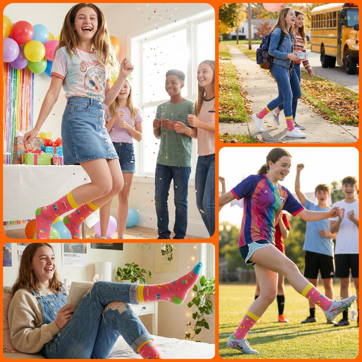 SIZE & PACKAGE:These fun and crazy socks are designed for teen girls in shoe sizes 6-12 and sock sizes 8-13. Each pair comes in a special birthday gift box ready for giving