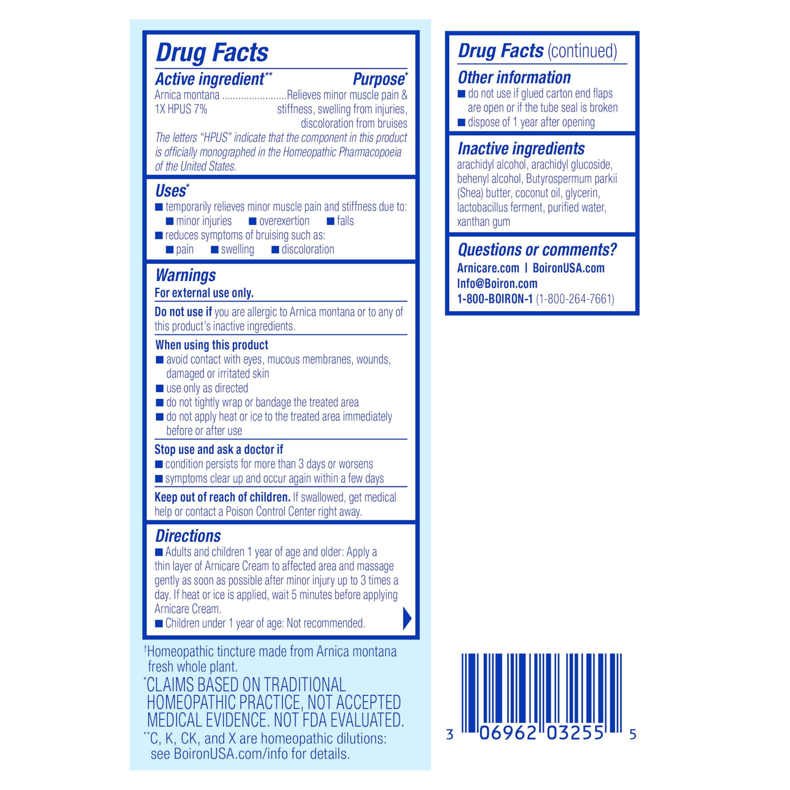 Scientifically formulated with the plant-powered ingredient Arnica, Arnicare Cream by Boiron relieves everyday muscle aches and pains without a traditional strong medicine smell. Use it at the first sign of back, neck, knee, shoulder or leg pain; stiffness; swelling from injuries; and bruises.* The cream’s moisturizing texture makes it ideal for massage. Light and easily spread, it smoothly covers sore muscles, aching feet, and larger areas of the body. This homeopathic medicine does not contain analgesics, fragrances, dyes, or parabens. *Claims based on traditional homeopathic practice, not accepted medical evidence. Not FDA evaluated.