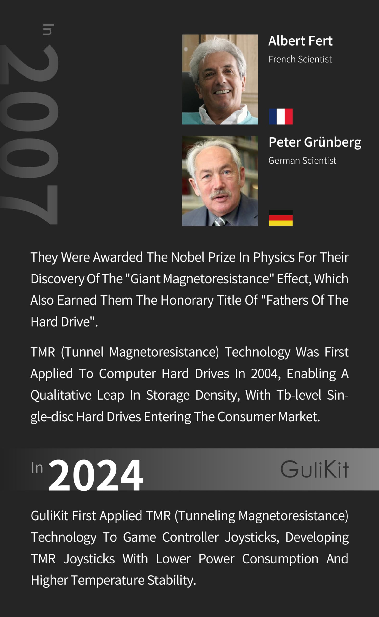 Upgraded Anti-Drift TMR Joystick Technology – Evolved from GuliKit's patented Hall Effect joystick, the more advanced TMR (Tunnel Magnetoresistance) thumb stick same works with contact-less magnetic field sensing mechanism to eliminate stick drift cause,while offers ultra-low power consumption, enhanced stability, drift-free long lasting durability, high-precision and silk-like smoothness.