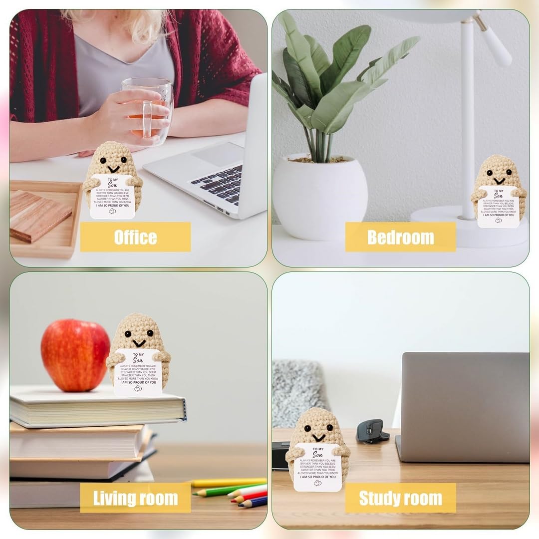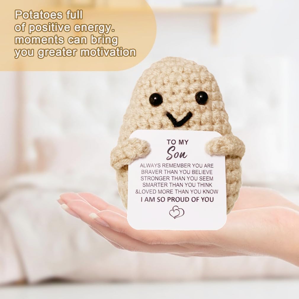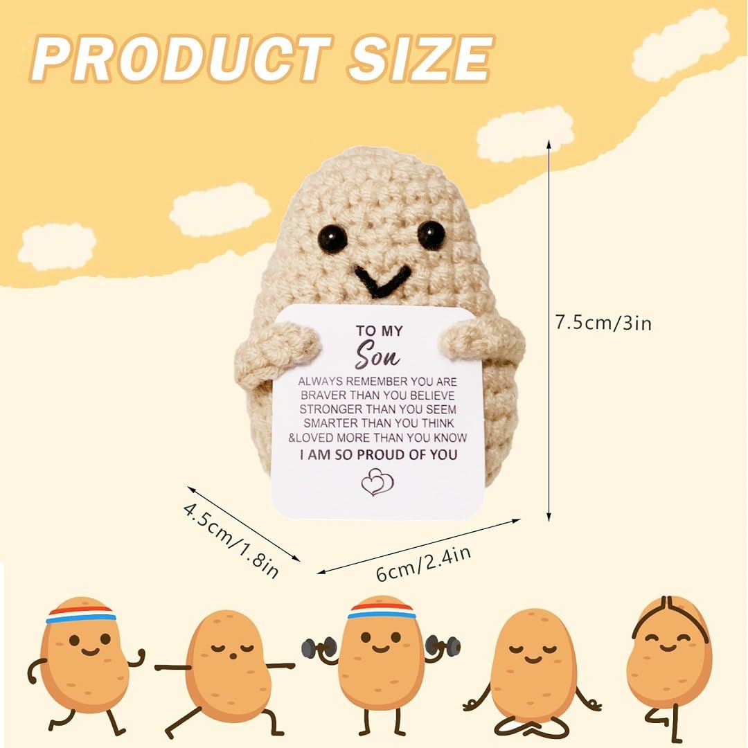 Funny Product: Our funny positive knitted doll is very cute, and the words in the card are inspirational. You will happier if you see the doll when you are happy, while it will make you happy when youβre upset. The positive potato doll will accompany forever.