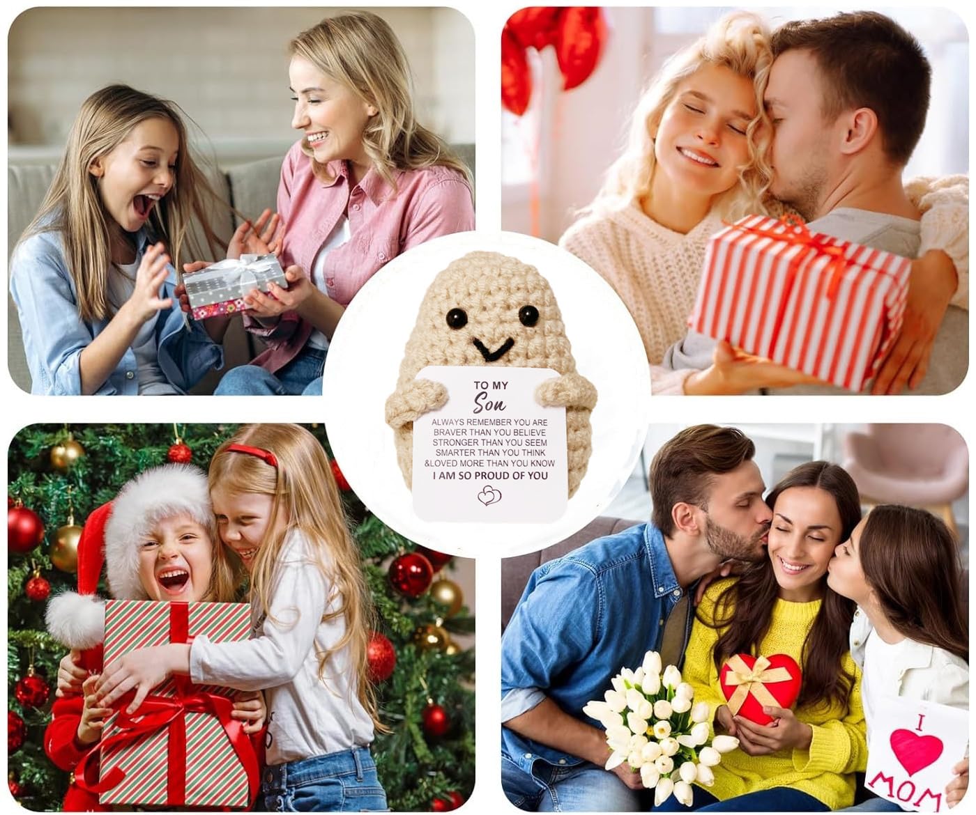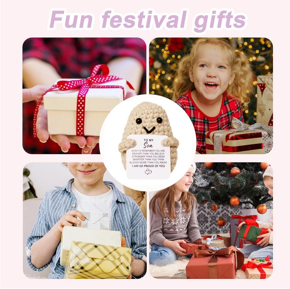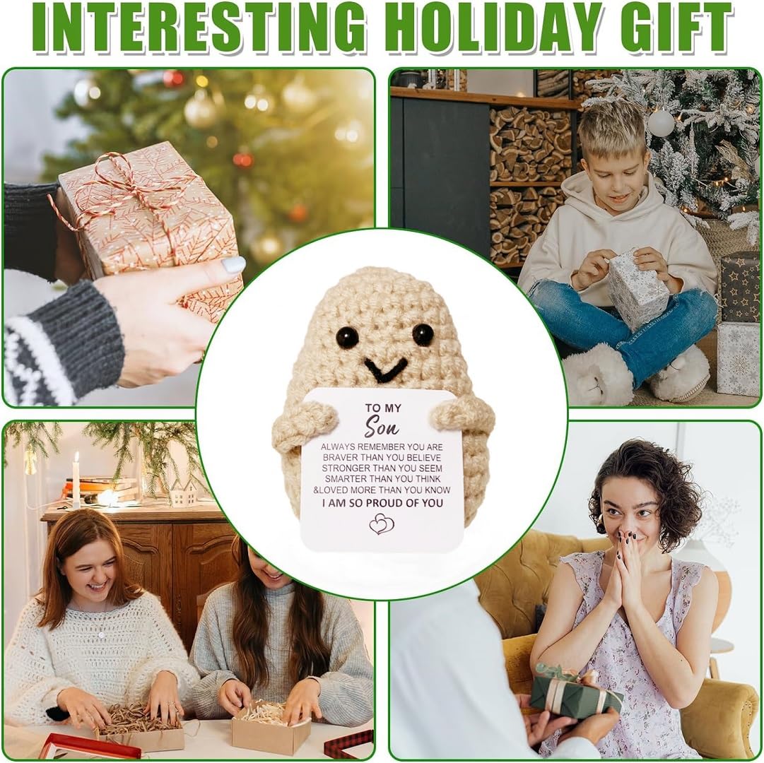 Funny Product: Our funny positive knitted doll is very cute, and the words in the card are inspirational. You will happier if you see the doll when you are happy, while it will make you happy when youβre upset. The positive potato doll will accompany forever.