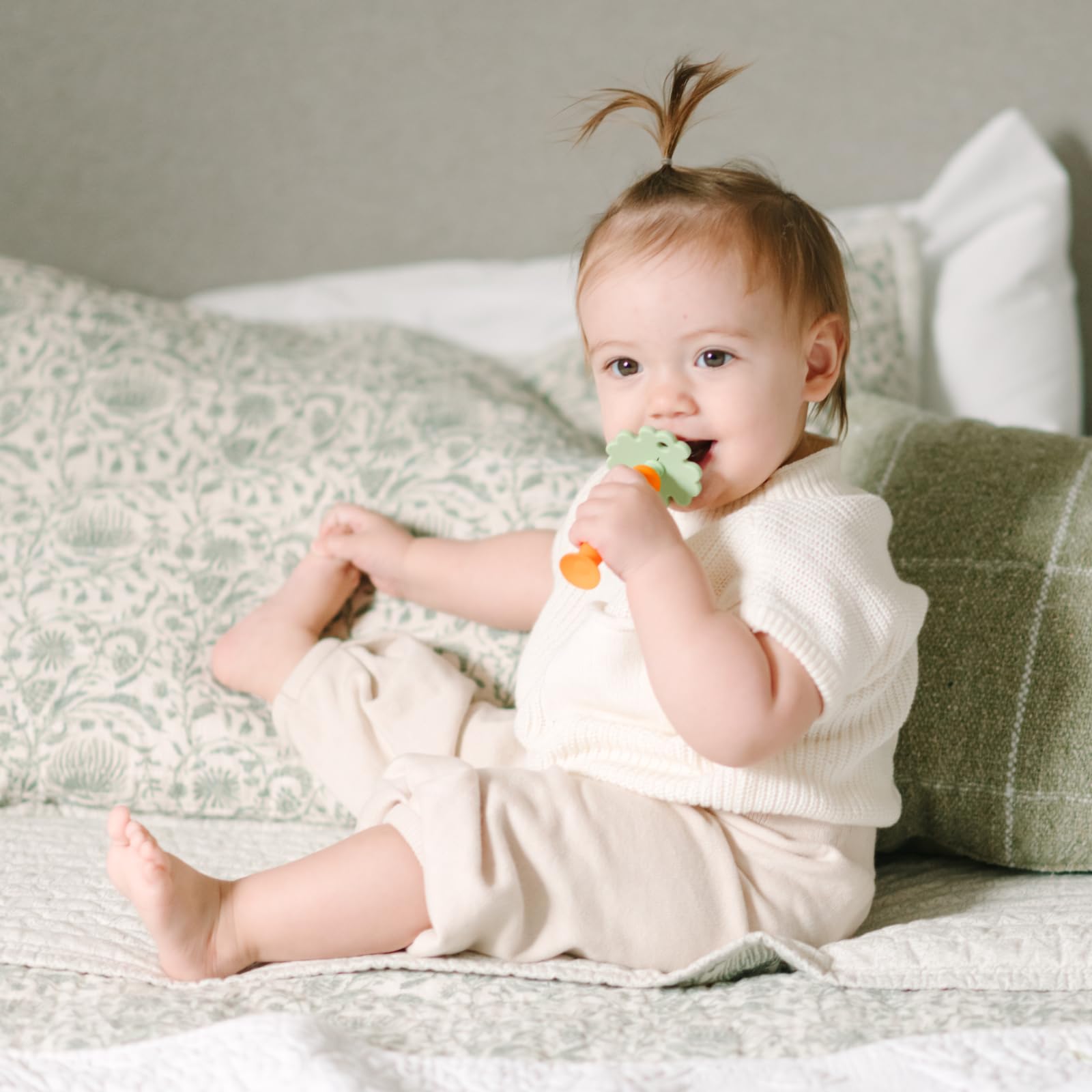 Fun Carrot to Chew: Our playful carrot-shaped baby toothbrush 6 to 12 months captures babies’ curiosity and encourage healthy oral habits early on. The fun design is ideal for little ones starting their brushing journey!