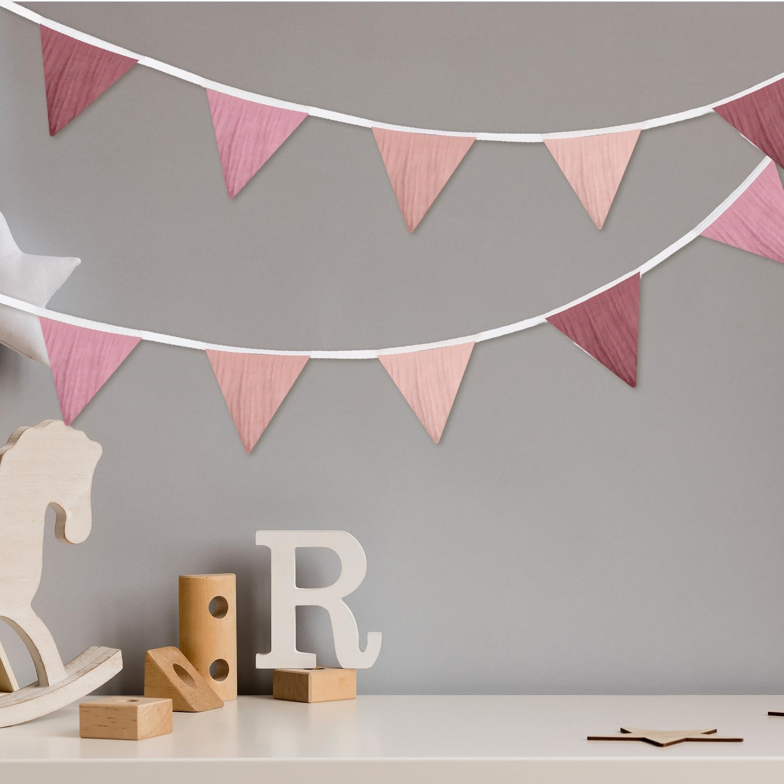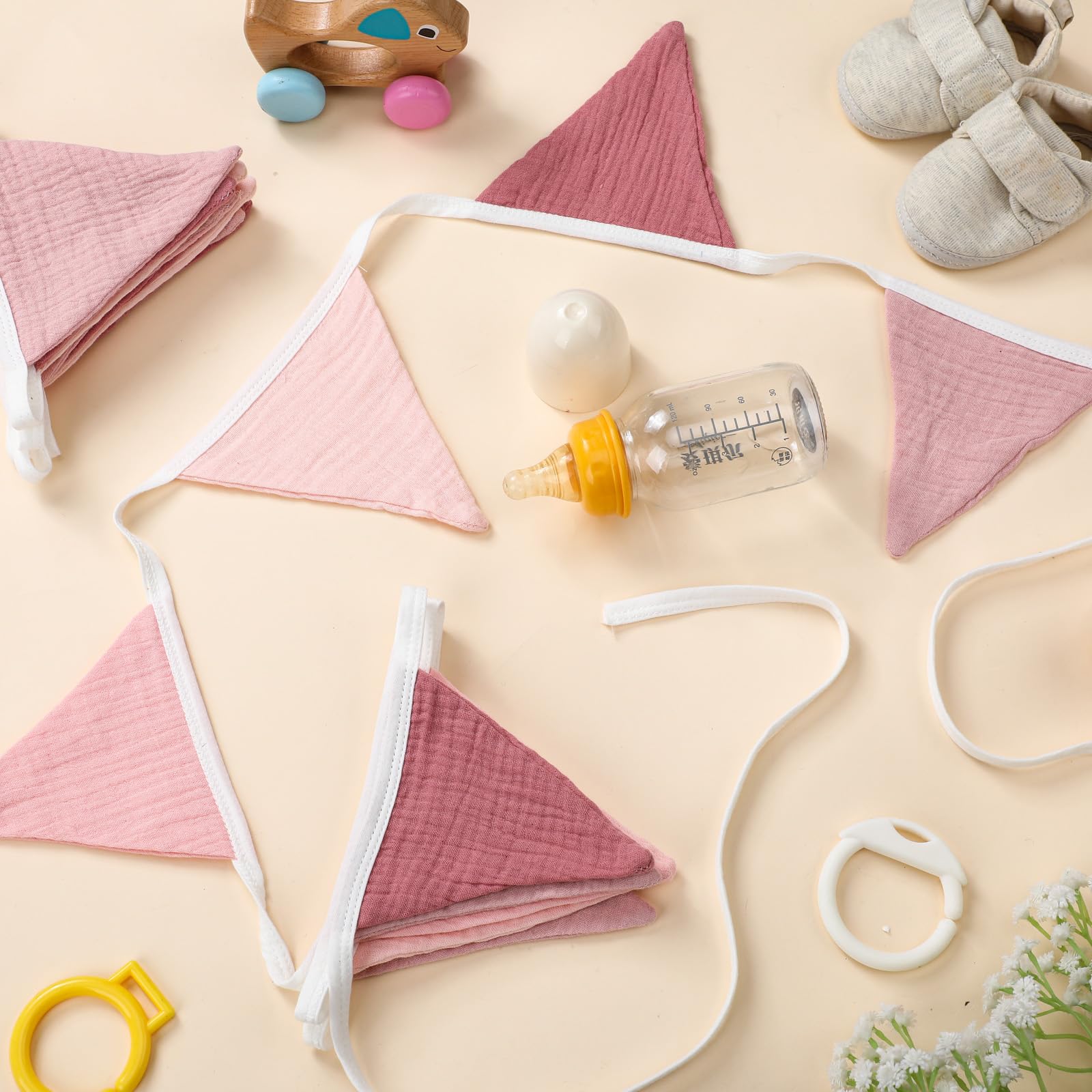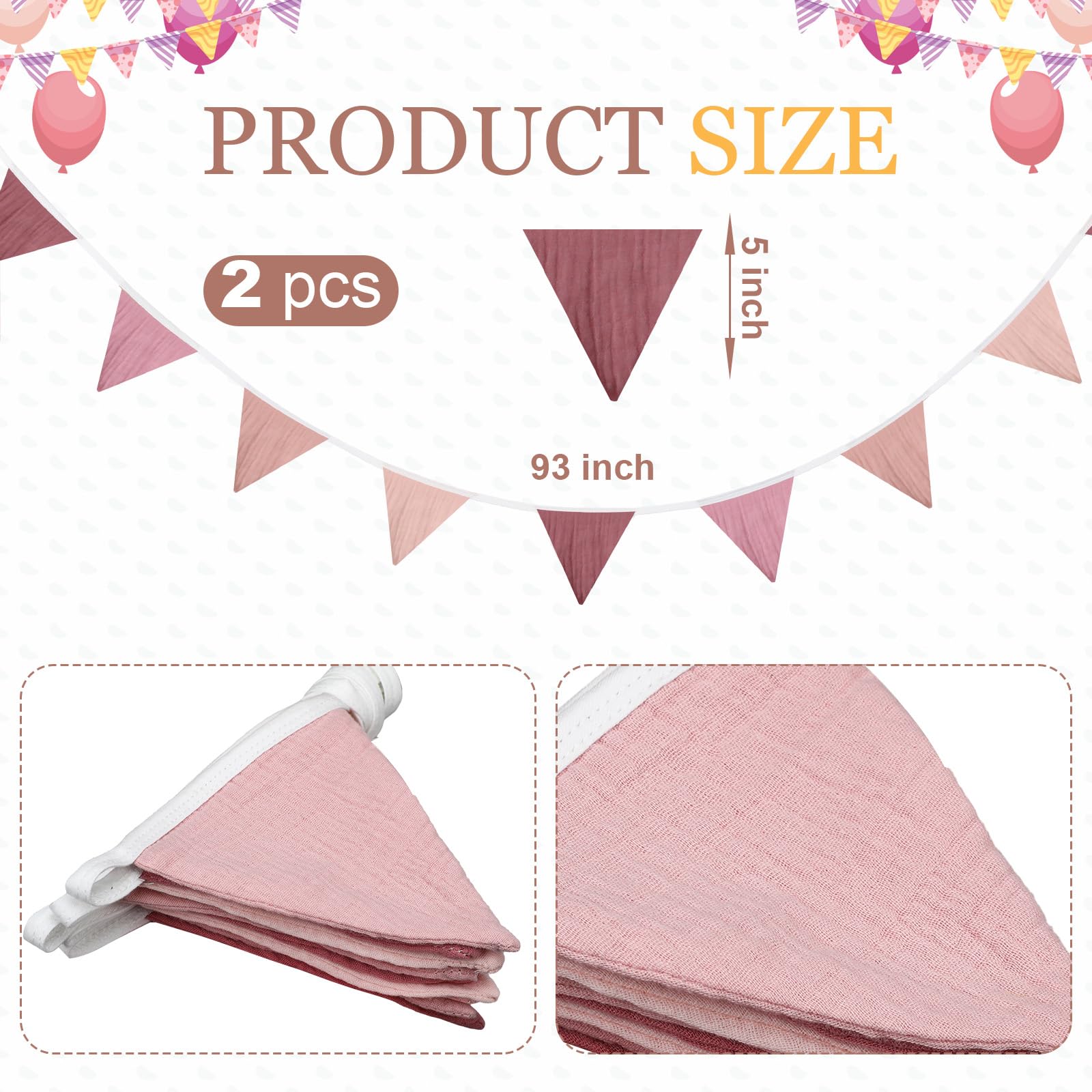 Multiple Colors: there are different pink colors on the pennant flags, such as pink, light pink and deep pink, enough to attract the attention of boys and girls, also can create a lively party atmosphere