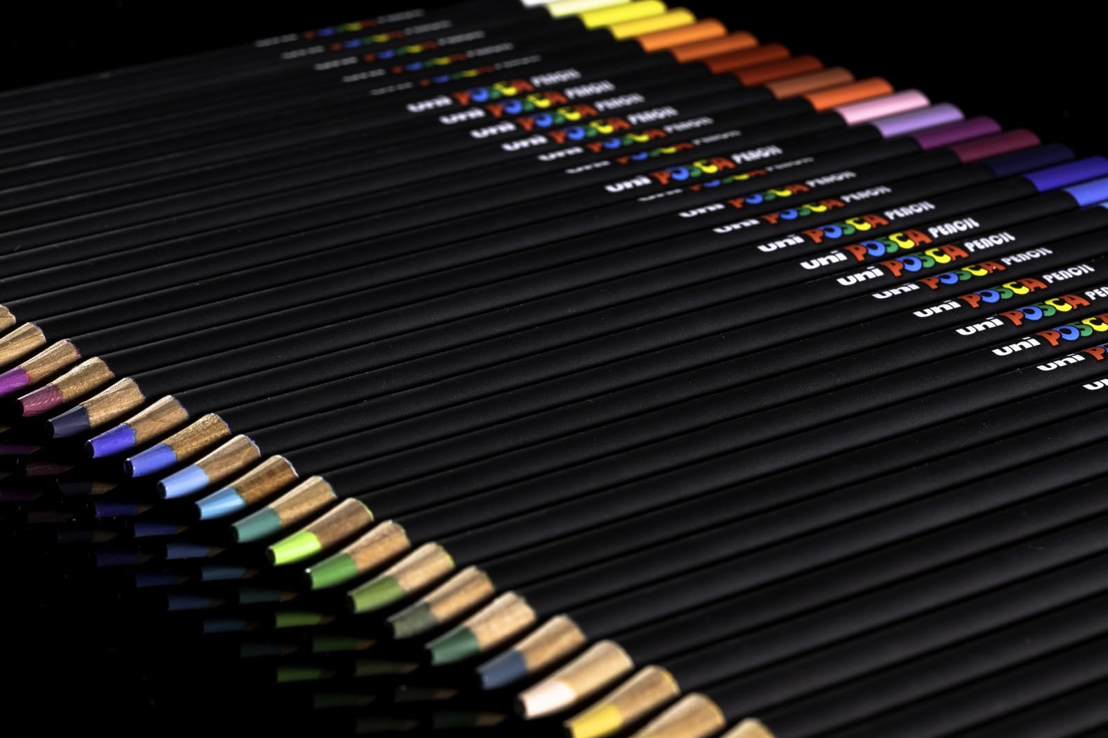 Explore the full range of possibilities with uniball's POSCA colored pencils, the ideal art supply for sketches, drawings and illustrations of all sorts. The thick 4.0mm lead core allows for varying degrees of pressure without breaking - even when creating fine details. The creamy glide delivers a smooth, vivid color laydown with a matte finish. Layer, blend and shade with the fade-resistant lead to create stunning effects. And just like other POSCA products, these pencils can be used on a variety of surfaces! Enthusiasts love the comfortable feel of the pencil's smooth, matte black barrel. Rounded end caps indicate the pencil color. Available in 36 bright, highly pigmented colors, POSCA artist grade colored pencils are perfect for various creative styles and artistic techniques.